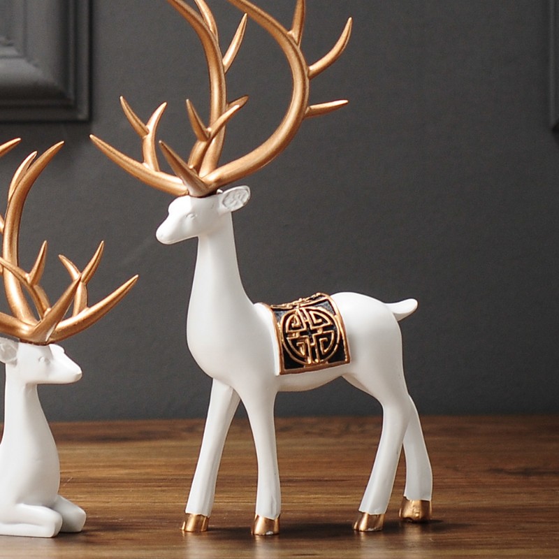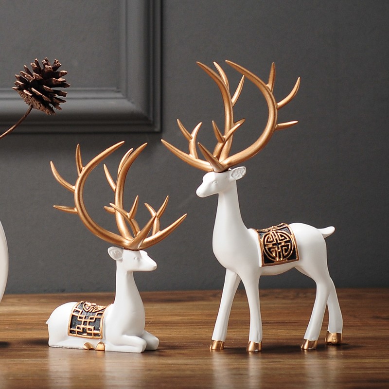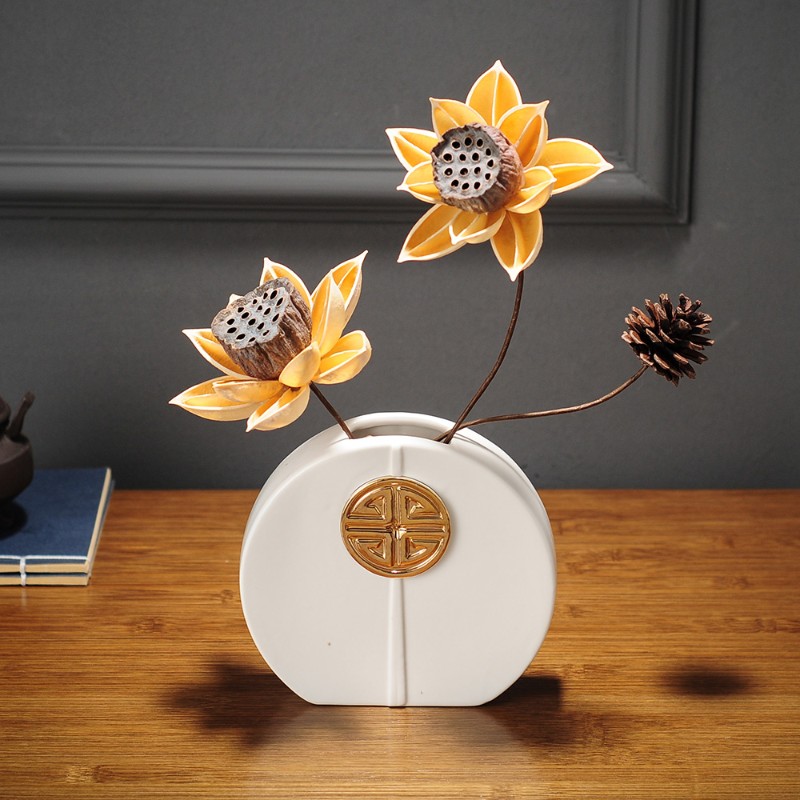 陶瓷复古花瓶餐桌装饰品新中式客厅电视柜茶几干花鹿摆件禅意插花