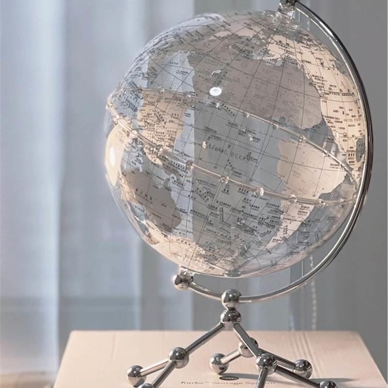 ins风意透明地球仪轻奢高级感简约客厅玄关办公室桌面装饰摆饰设