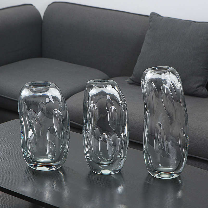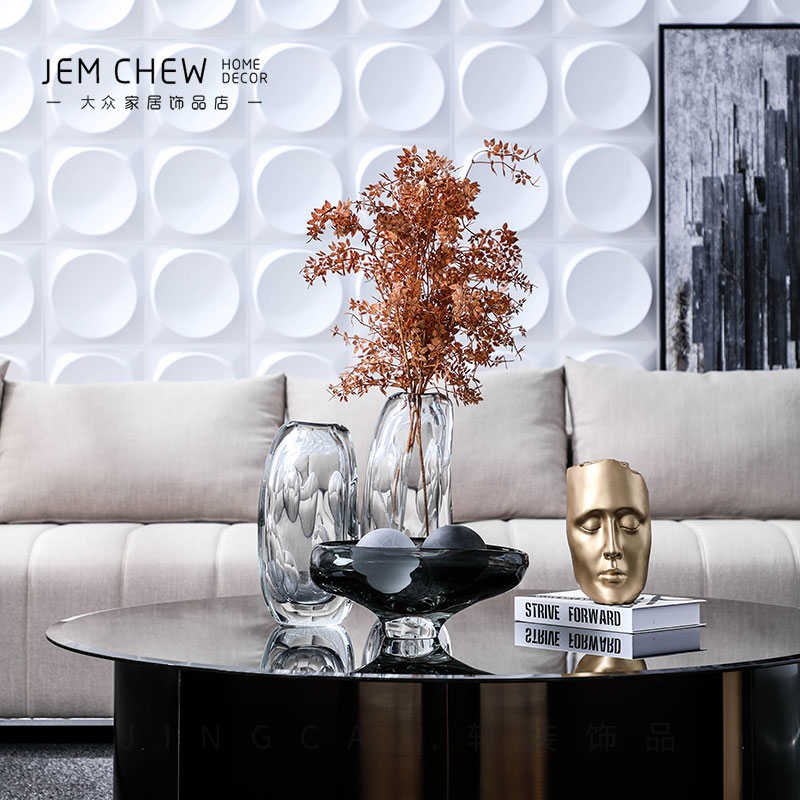 现代简约玻璃花瓶摆件 样板卧室客厅工艺品软装饰品干花插花器