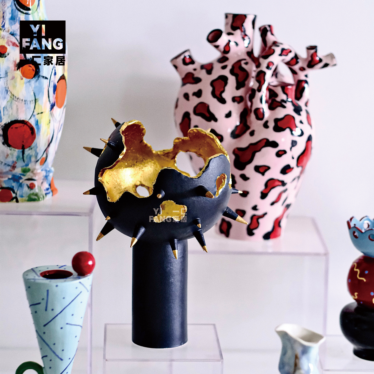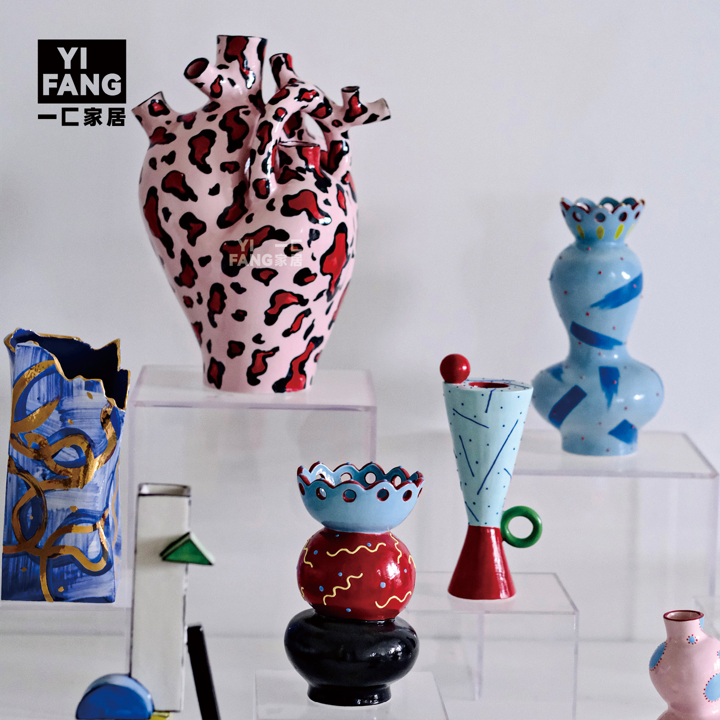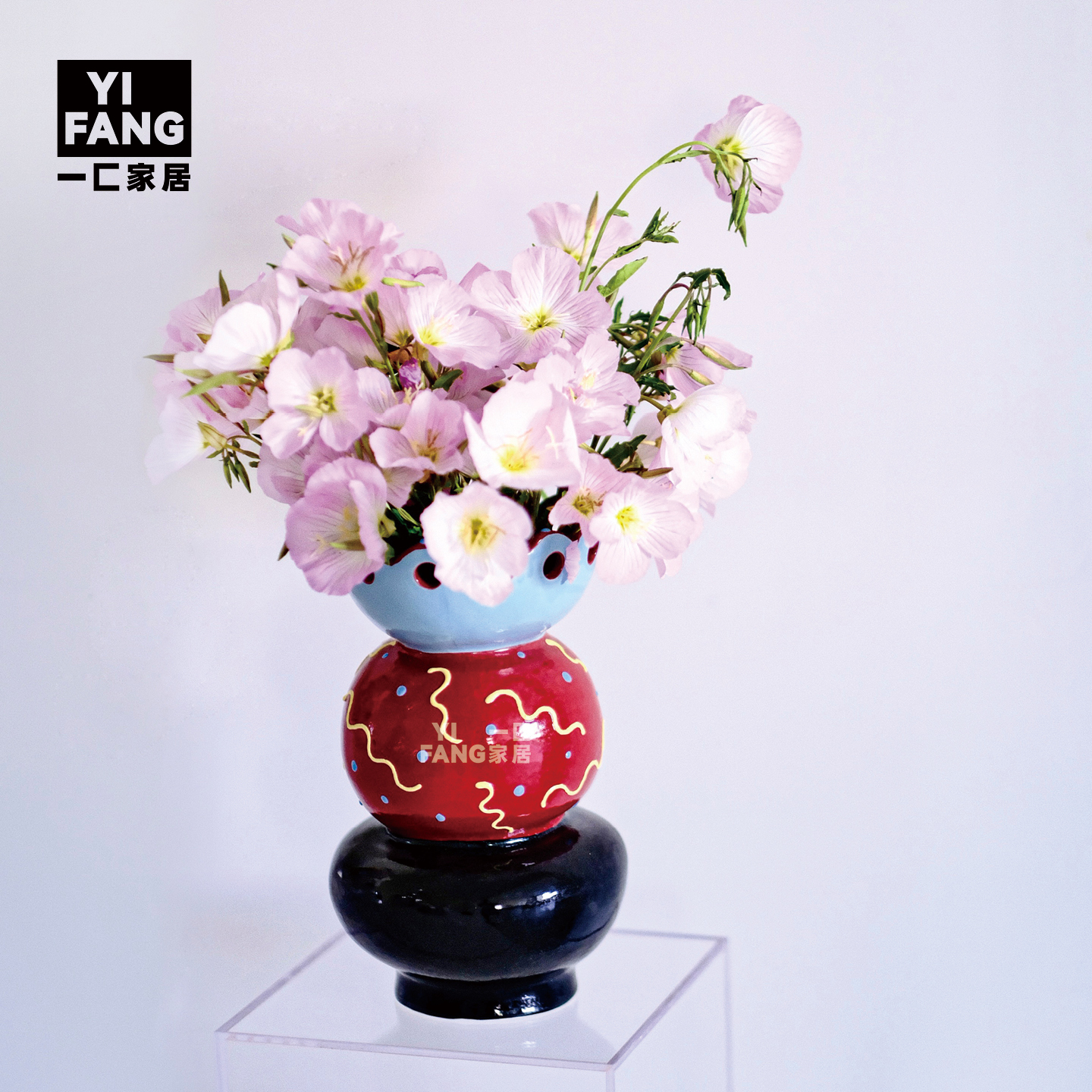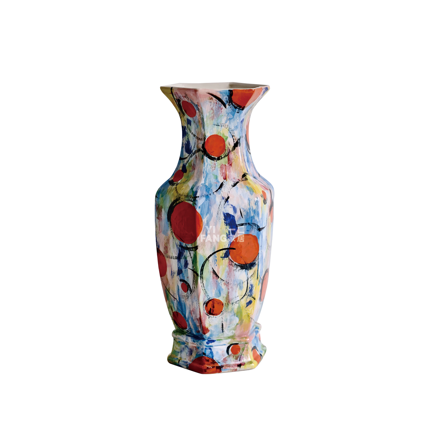 一匚 现代艺术手工彩绘创意陶瓷花瓶 客厅插花摆件民宿展厅摆件
