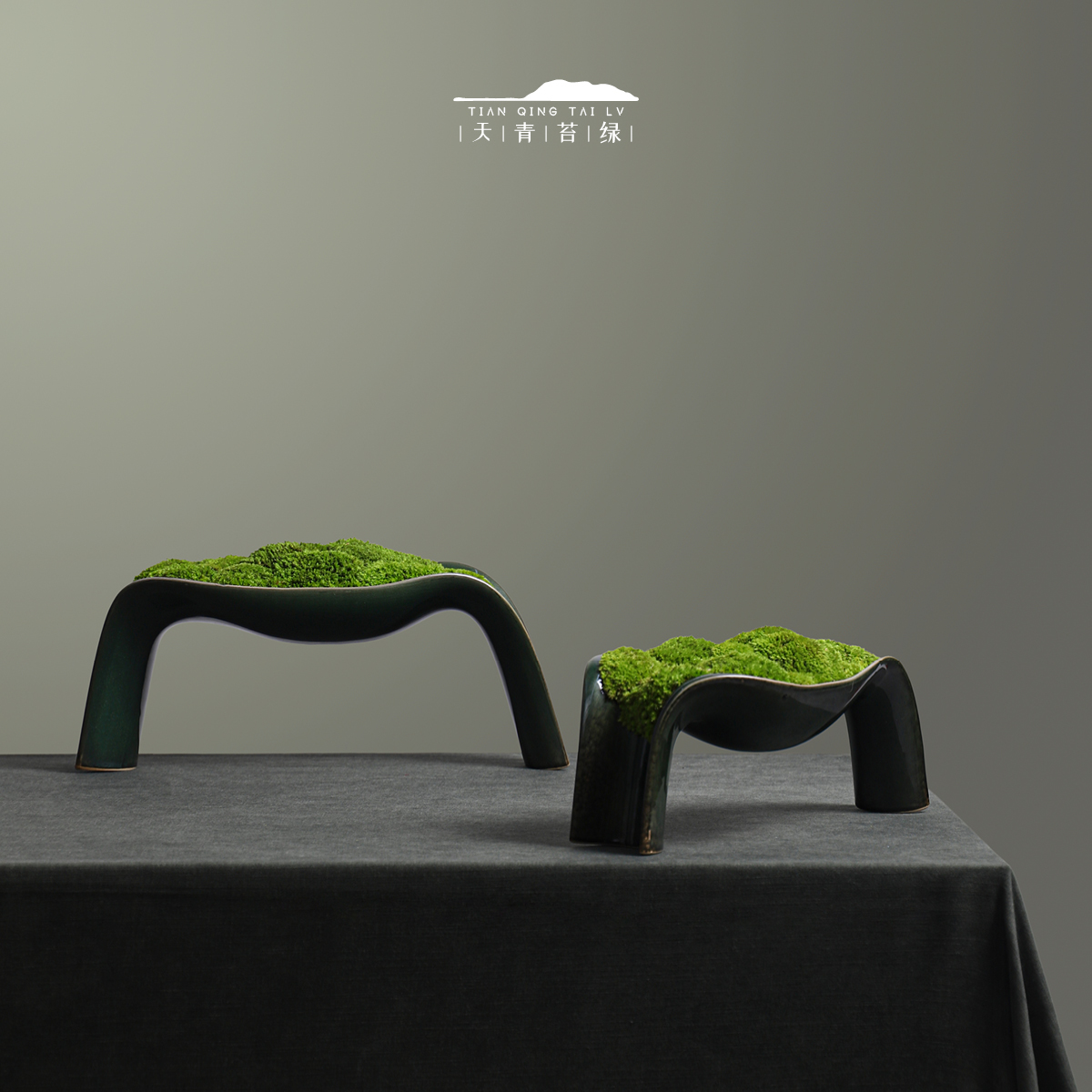 天青苔绿 新中式陶瓷花器永生苔藓 茶空间民宿玄关桌面软装摆件