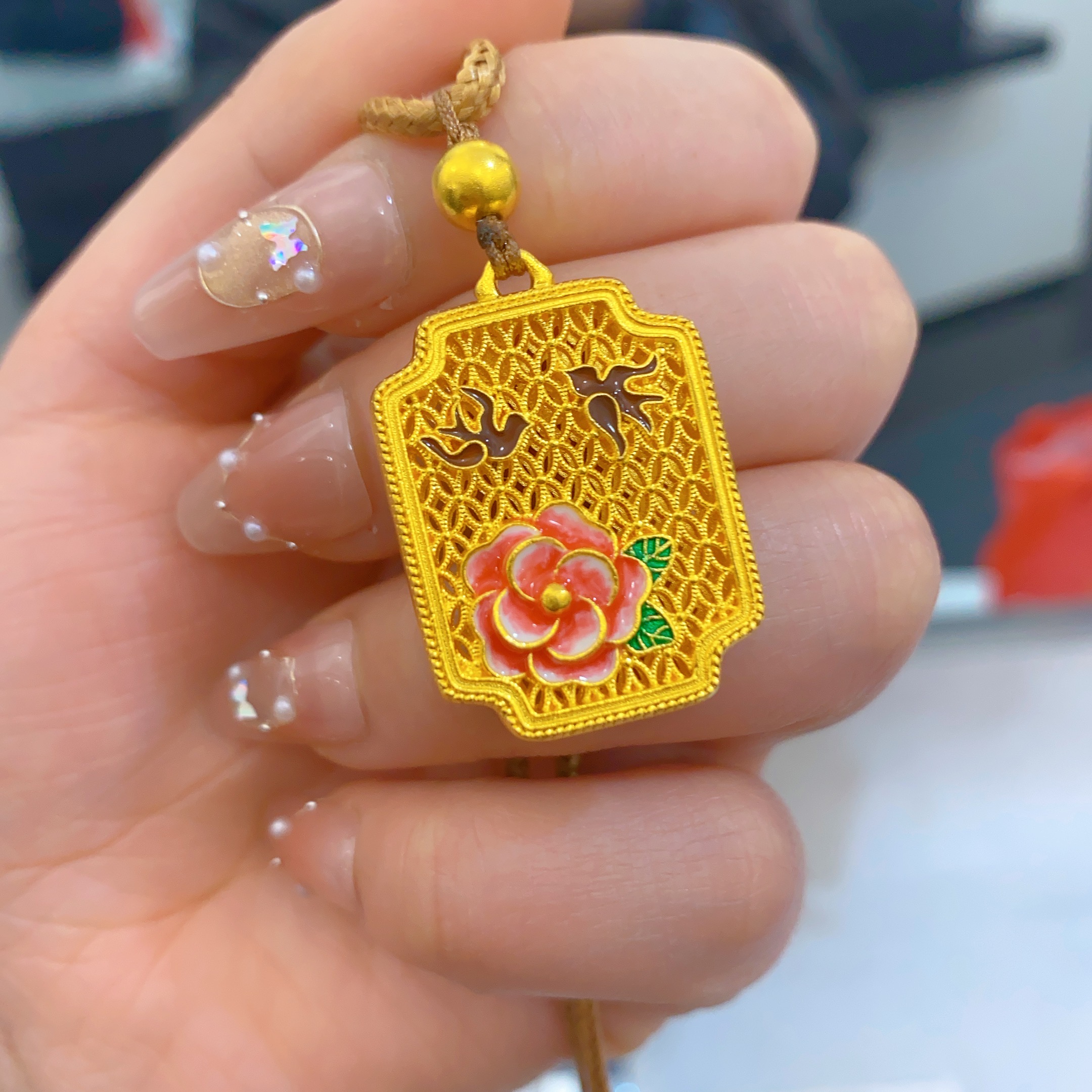深圳水贝黄金包银吊坠女珐琅彩轻奢喜上眉梢镂空新中式国风吊坠