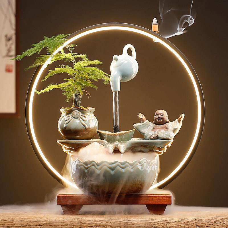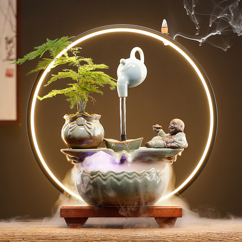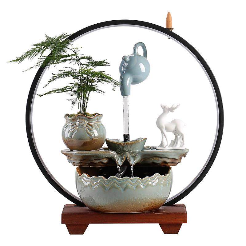 创意流水生财陶瓷悬壶摆件循环水喷泉造景客厅办公室桌面招财礼品