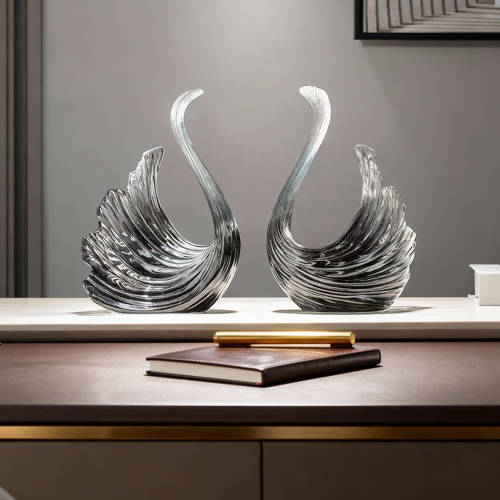 现代简约透明玻璃天鹅装饰摆件家居客厅书房艺术品工艺品
