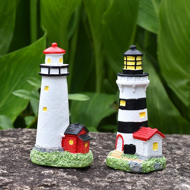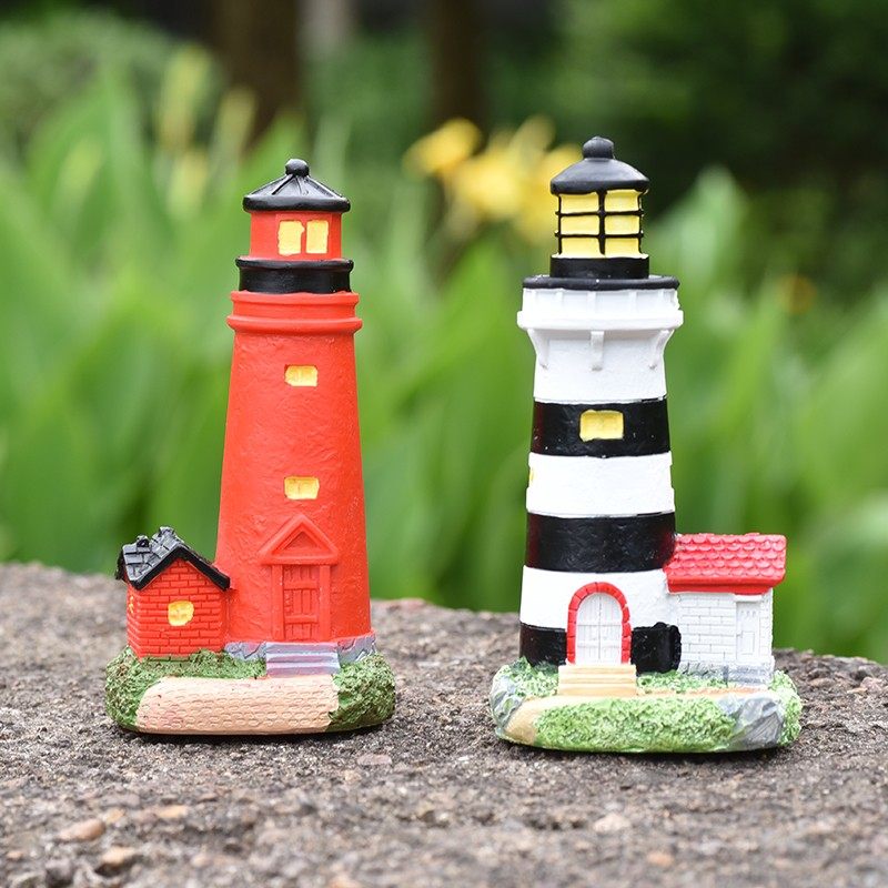 地中海灯塔小摆件模型树脂工艺品海洋主题装饰家居红色白色建筑物