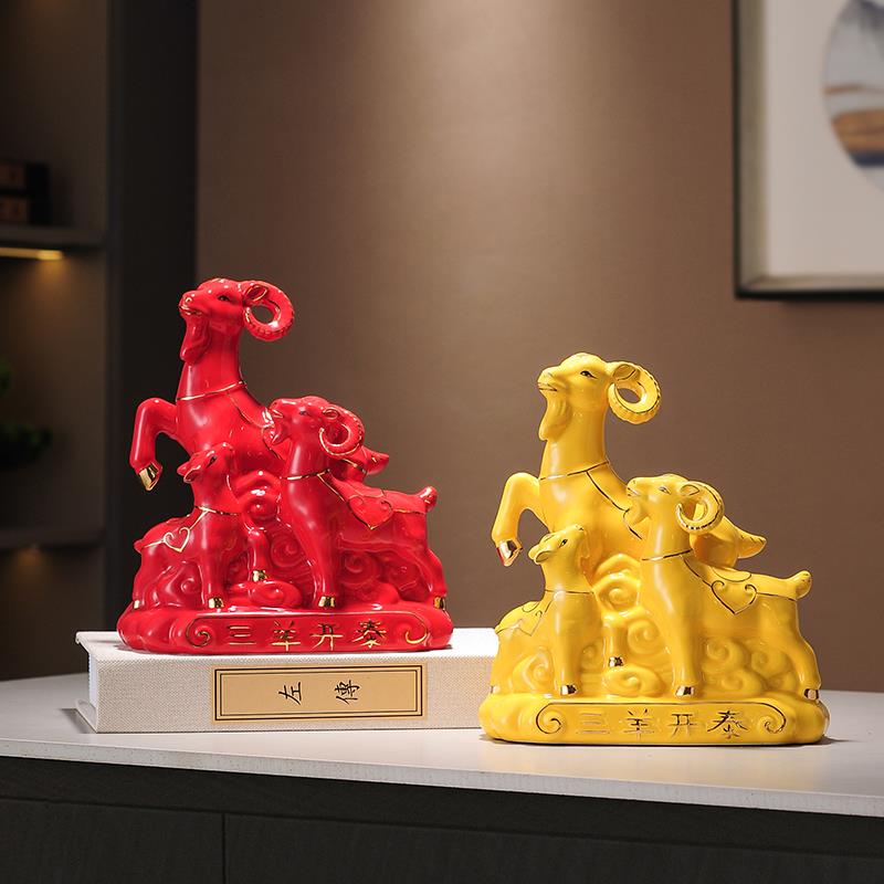 陶瓷十二生肖属相三羊开泰三阳开泰摆件招财工艺品装饰品