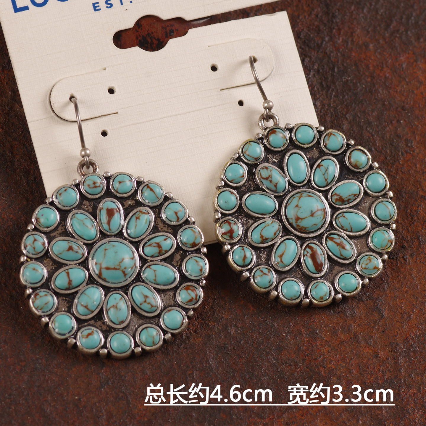 LK2蓝绿色复古欧美波西米亚夸张中性朋克巴洛克手项链耳环夹钉扣