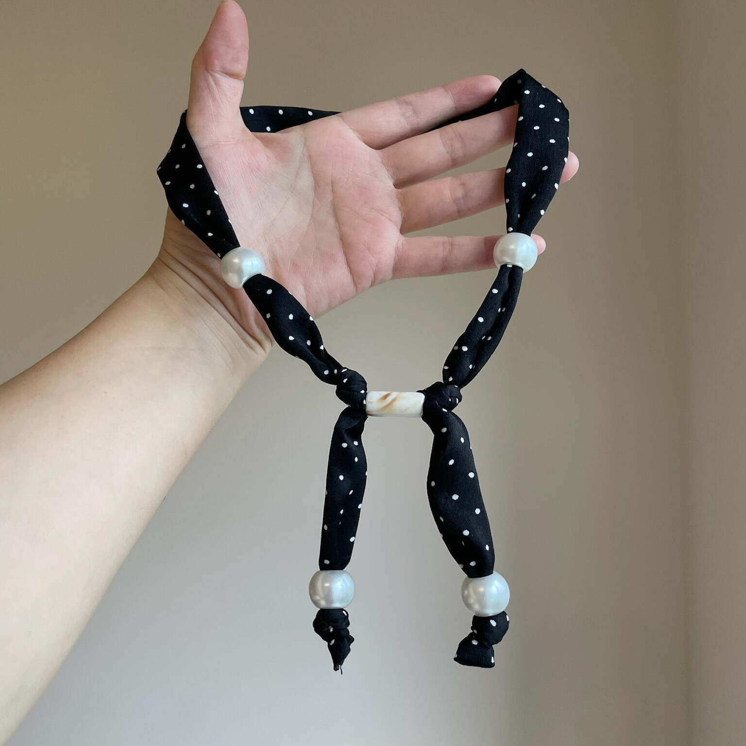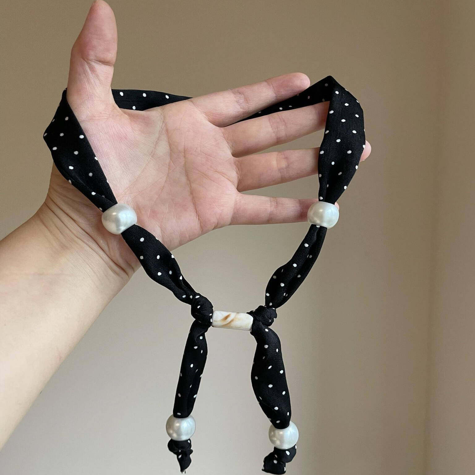 韩系ins风波点串珠黑色丝巾项链女轻奢小众设计配饰可调节锁骨链