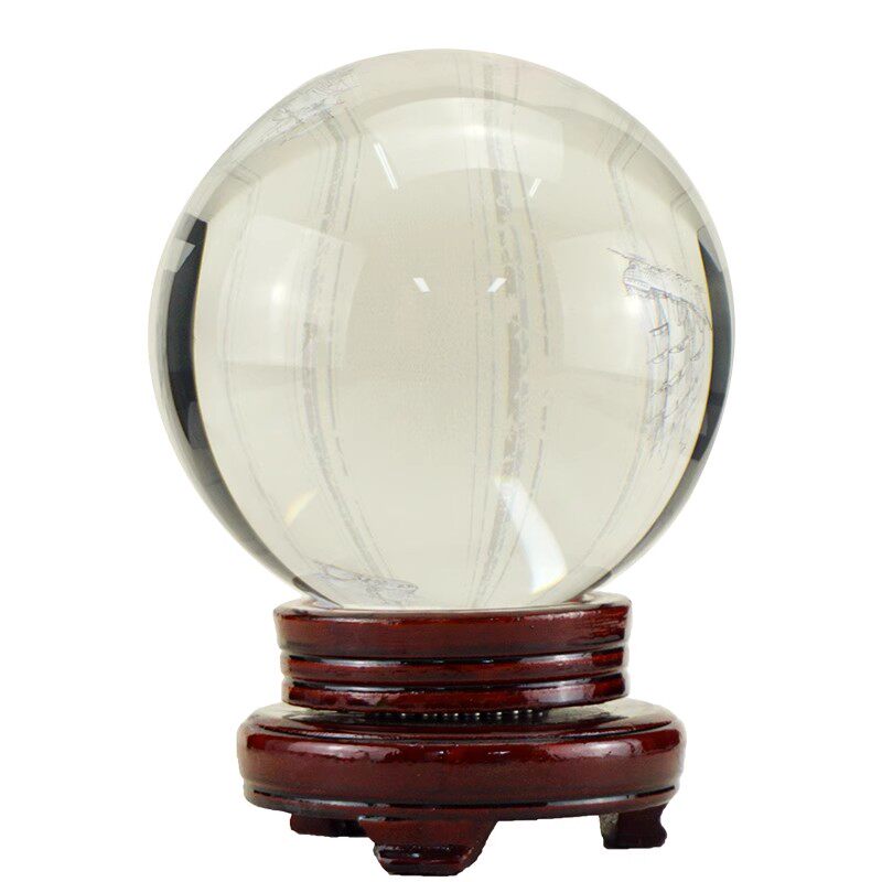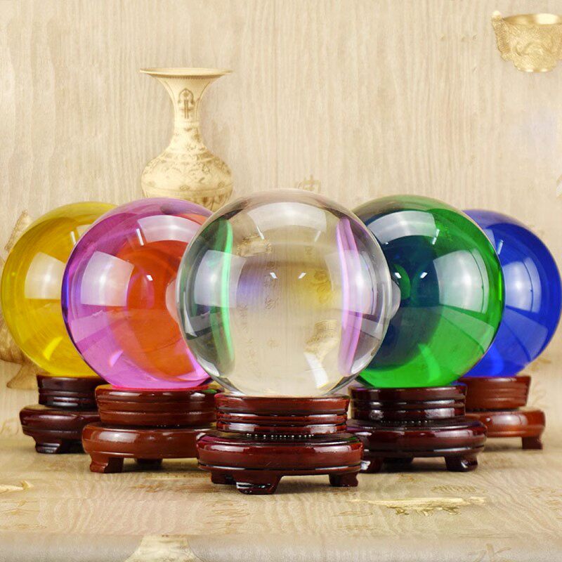 黄色水晶球摆件白紫红透明圆球乔迁新居家居客厅办公室店铺开业
