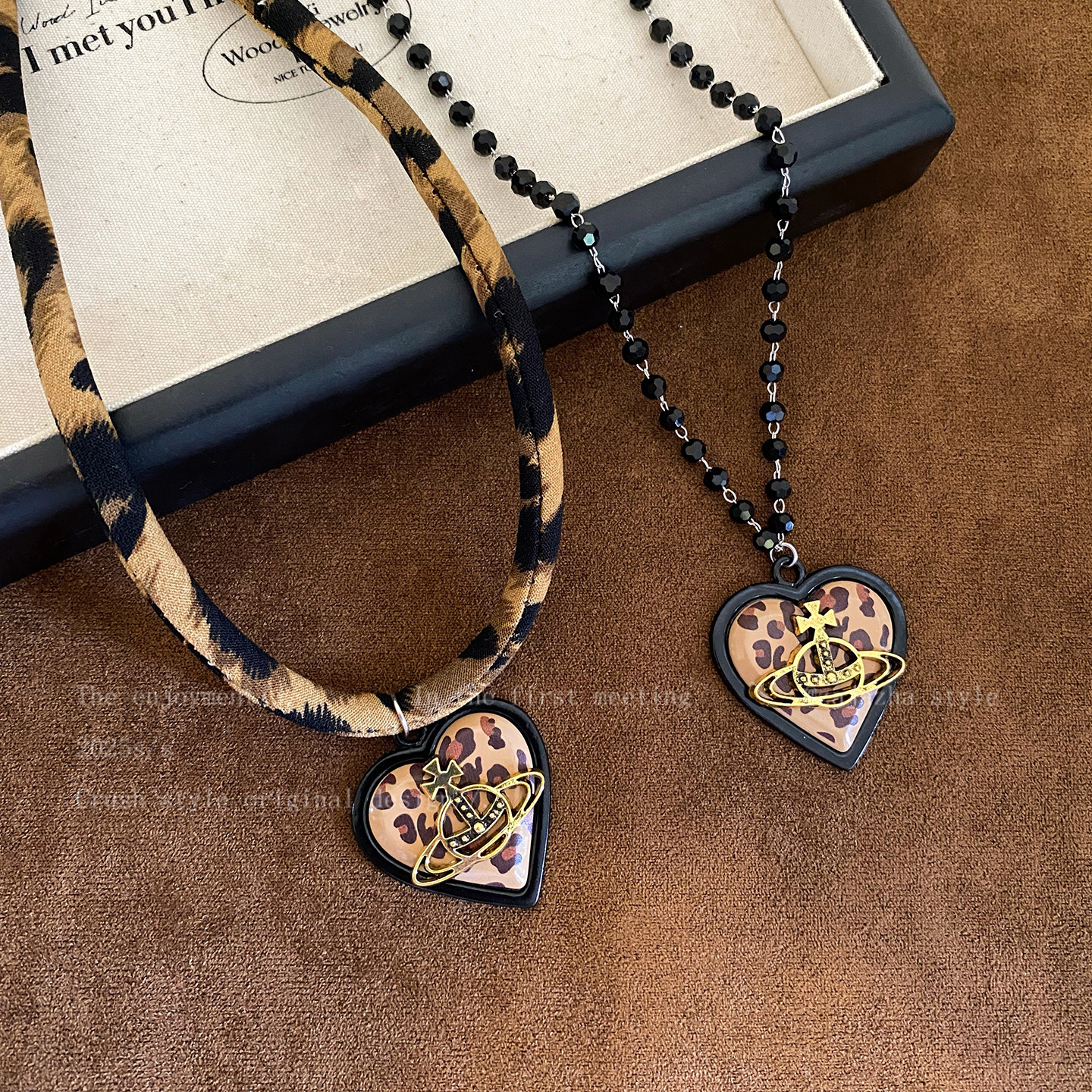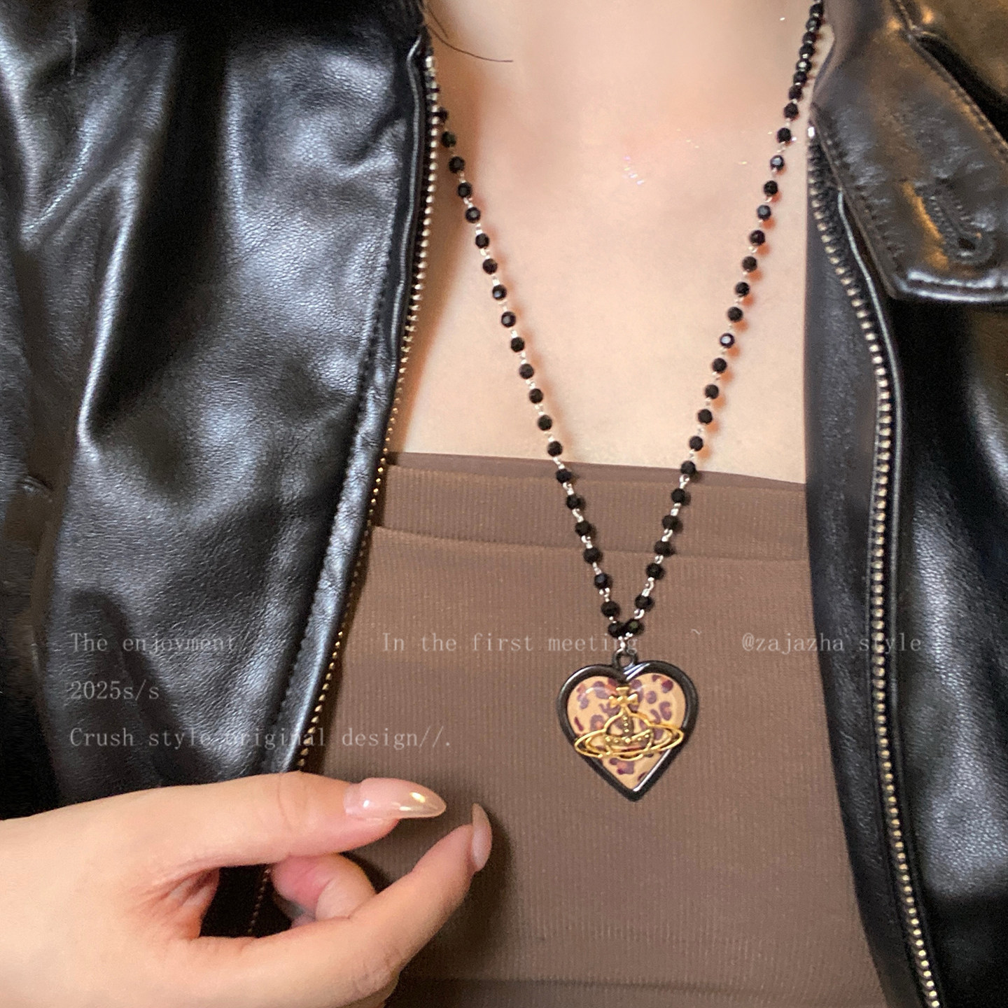 西太后土星豹纹爱心大项链女款长款装饰毛衣链秋冬美拉德吊坠配饰