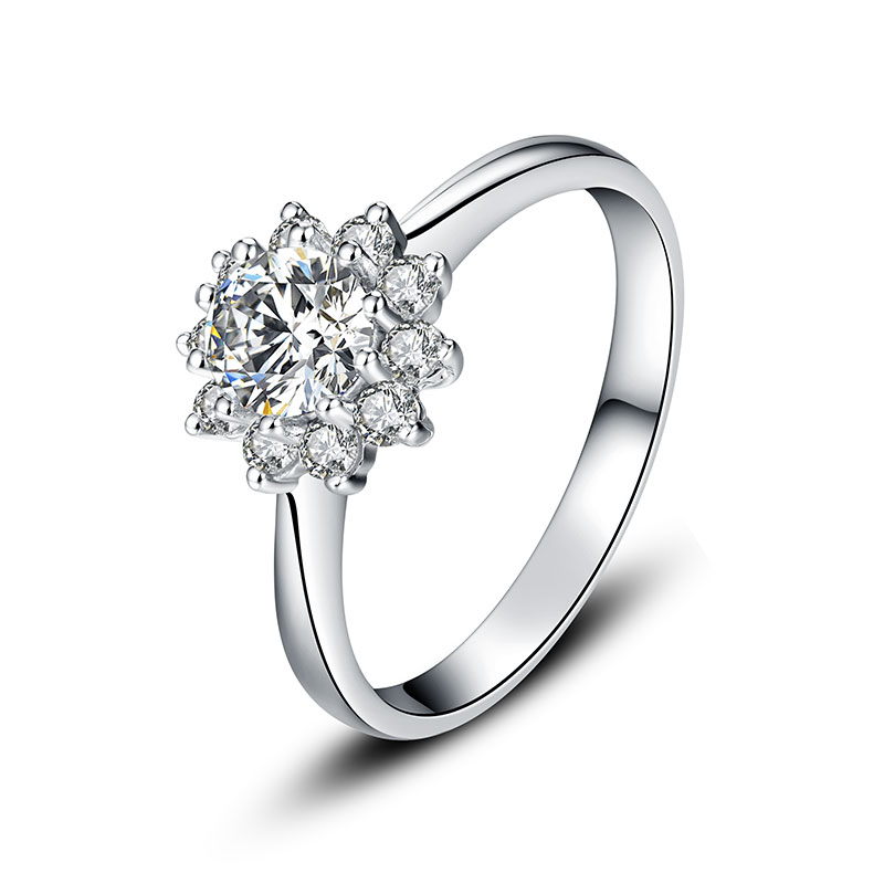 新款铂金D色莫桑钻戒项链套装正品太阳花女求婚结婚戒指女友礼物