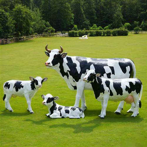 户外园林农场牧场仿真奶牛雕塑草坪小区大型玻璃钢动物牛模型摆件