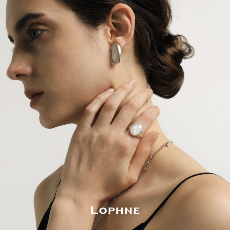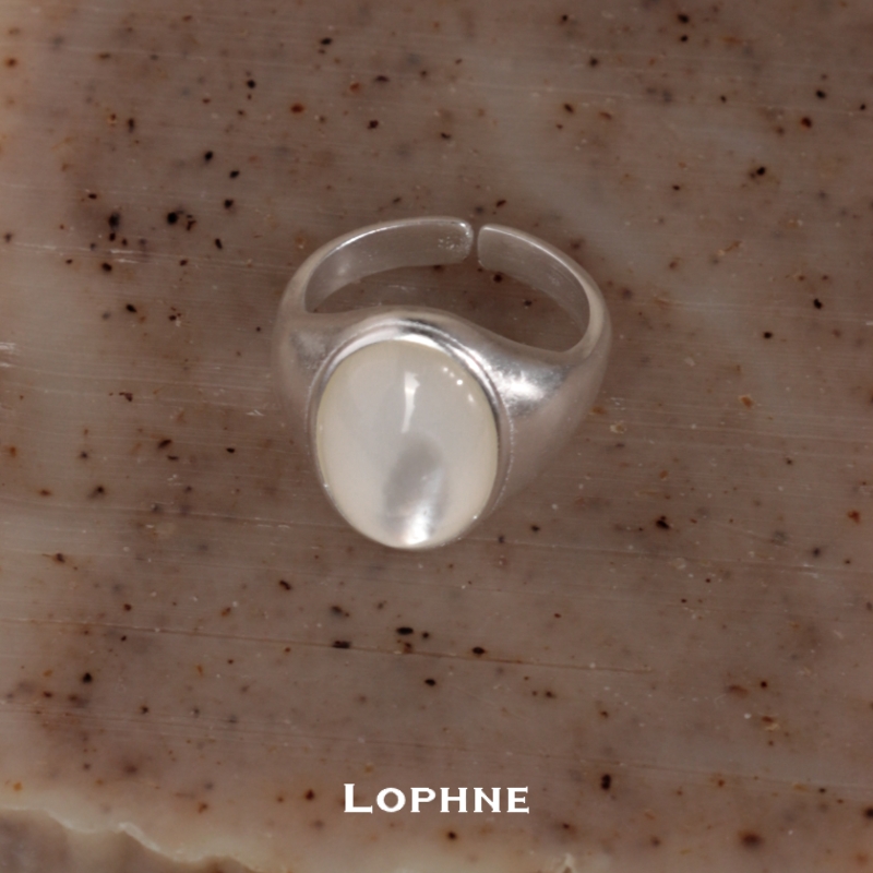 LOPHNE 经典椭圆贝母中古戒指 纯银复古气质简约高级感开口可调节