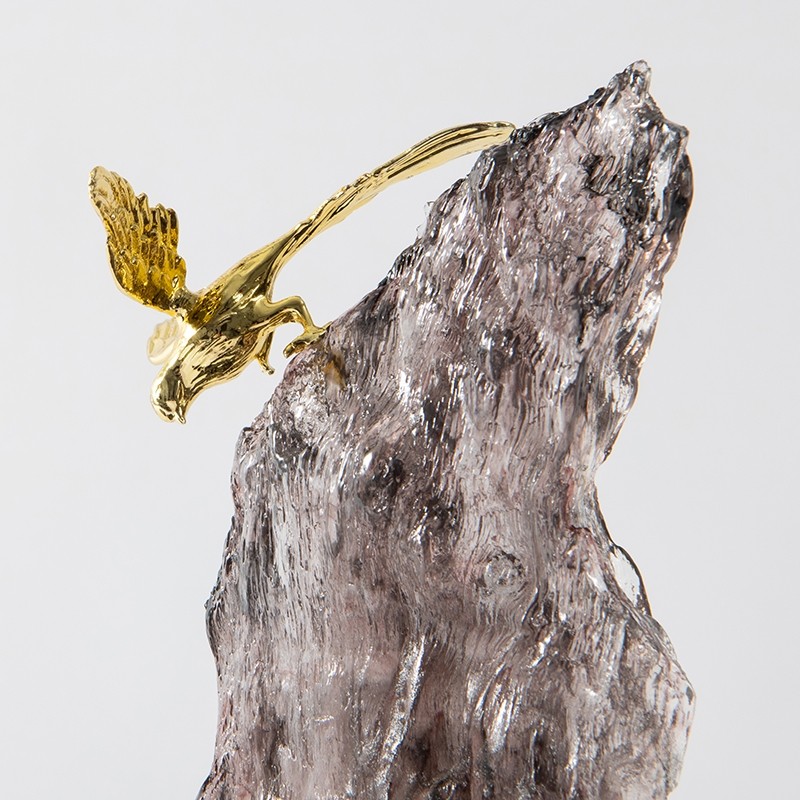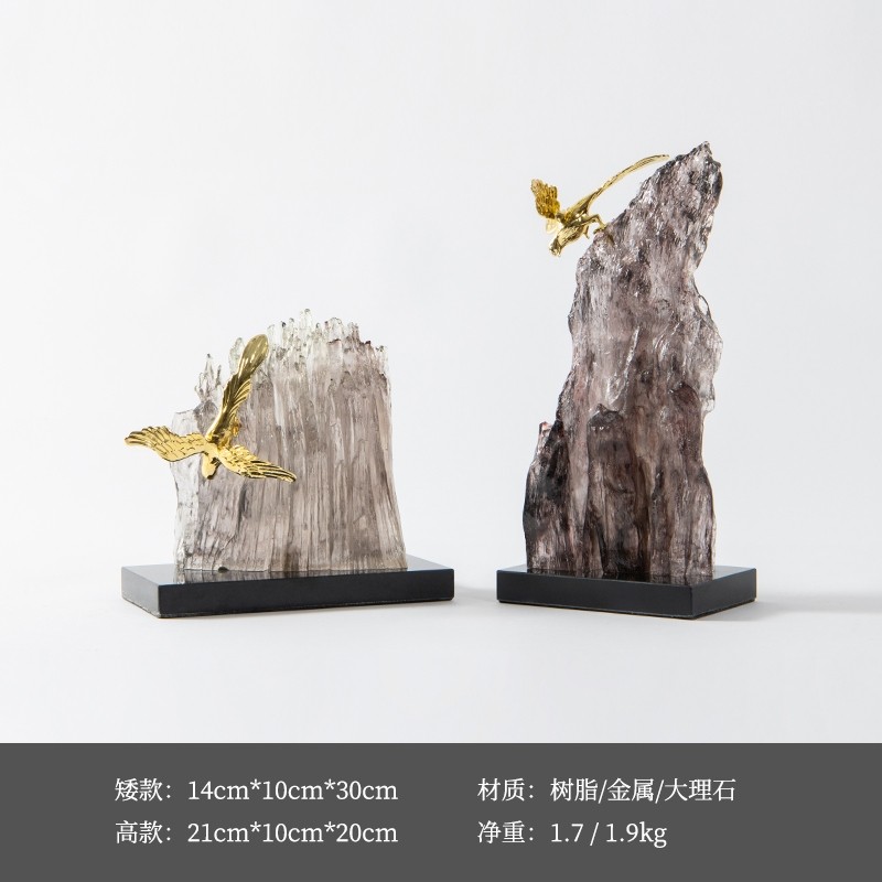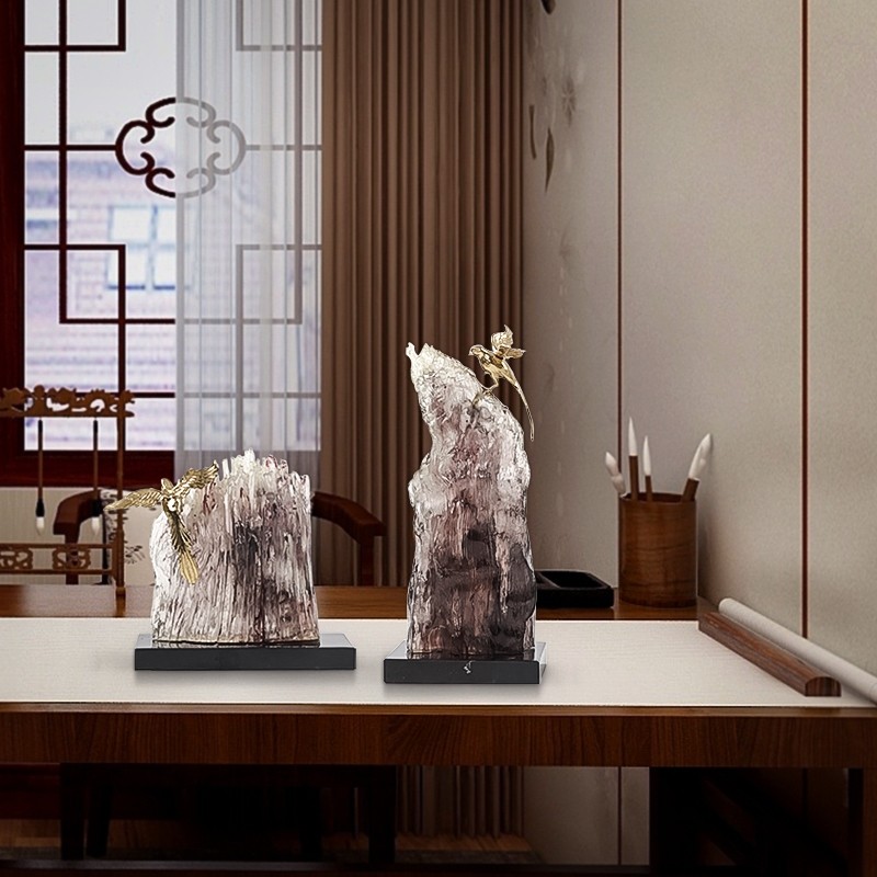 设计师现代新中式禅意样板房透明假山招财摆设家居客厅玄关摆件
