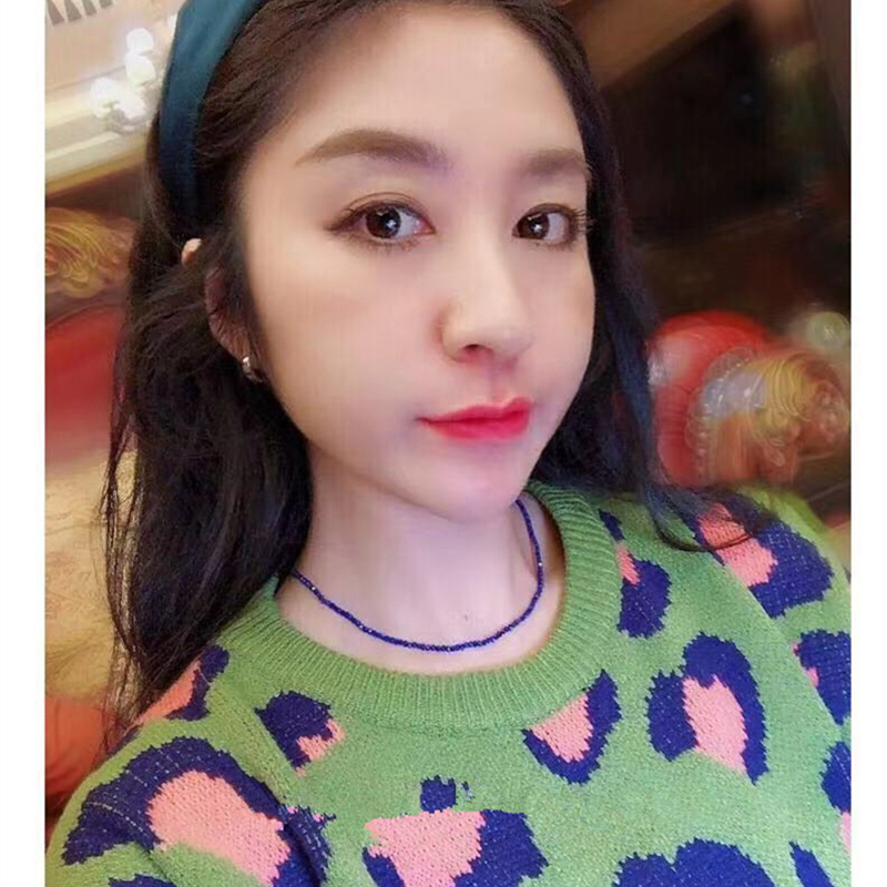 原创天然青金石项链男女简约个性INS克莱因蓝baby细挂链客定时尚