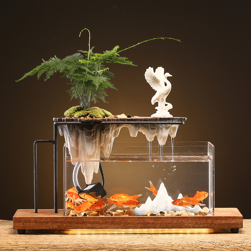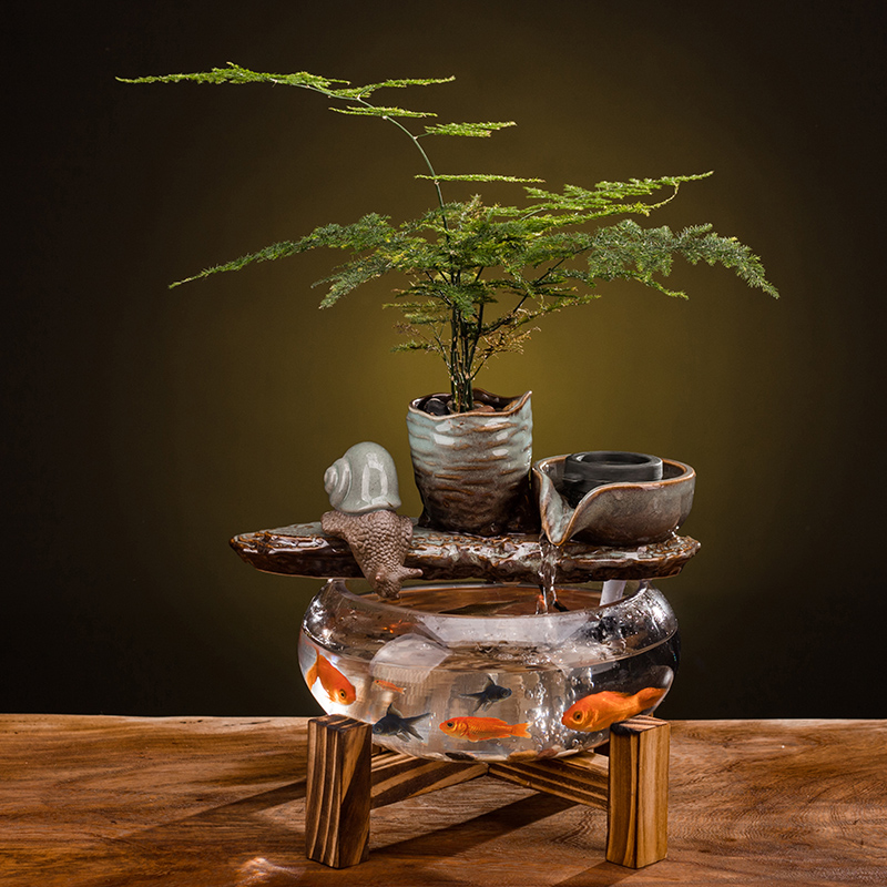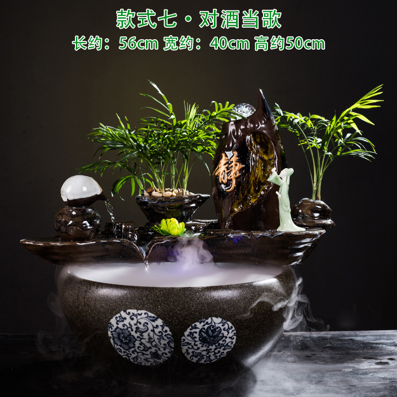 流水生财摆件水循环喷泉加湿器鱼缸客厅办公室造景观摆件开业礼品