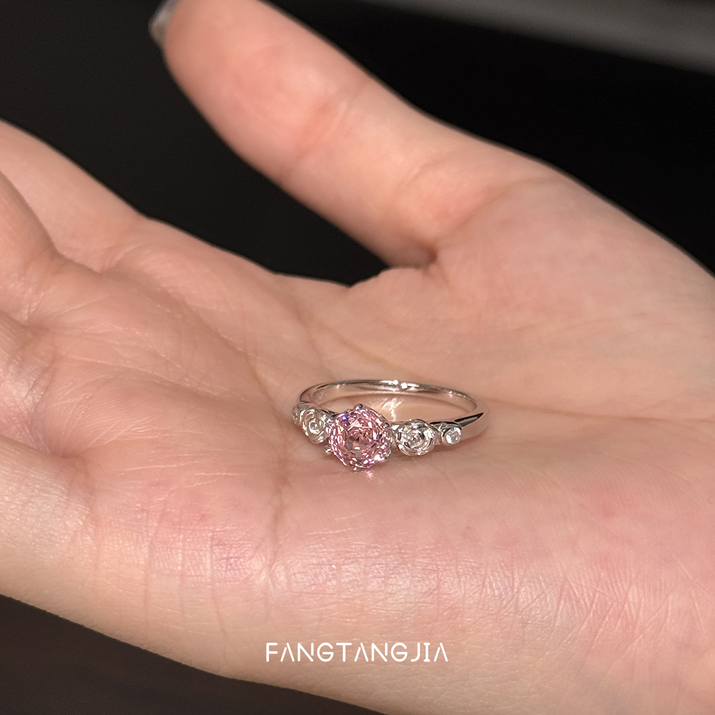 方糖家 轻奢温柔樱花粉烟花切纯银戒指女款小众设计高级感指环女