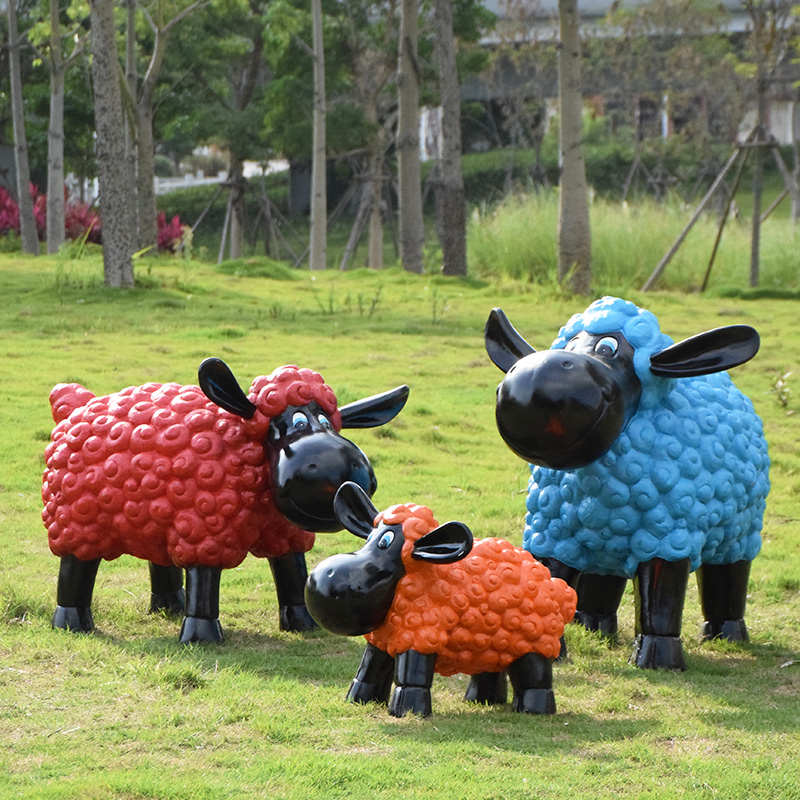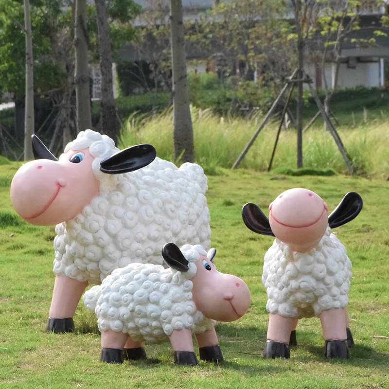 户外园林景观庭院幼儿园草坪装饰玻璃钢仿真动物卡通绵羊落地摆件