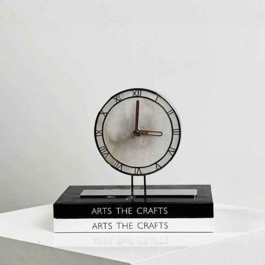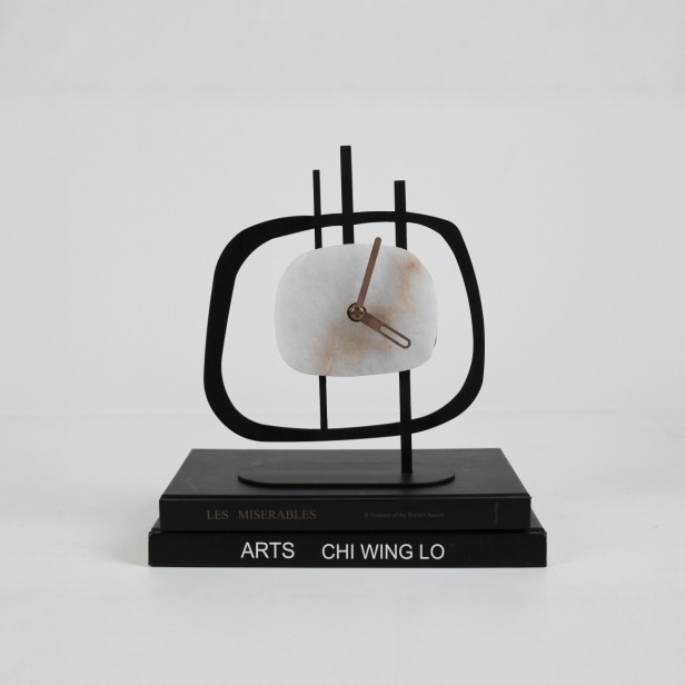 茗尚家居现代简约金属天然云石钟摆件样板间售楼处客厅桌面装饰品