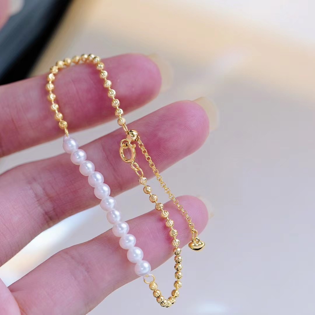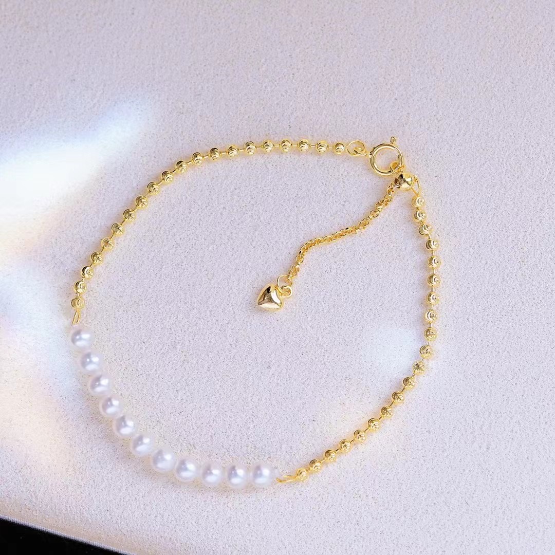 DIY配件 S925纯银带硅胶球调节车花通孔多珠手链手饰珍珠空托配饰