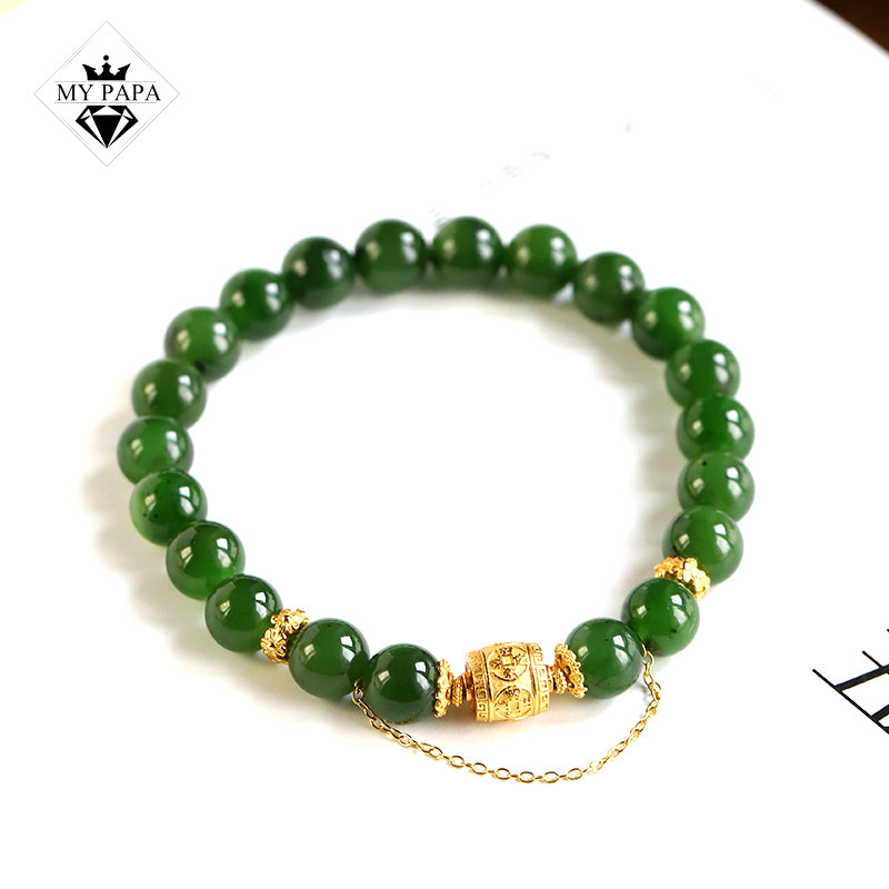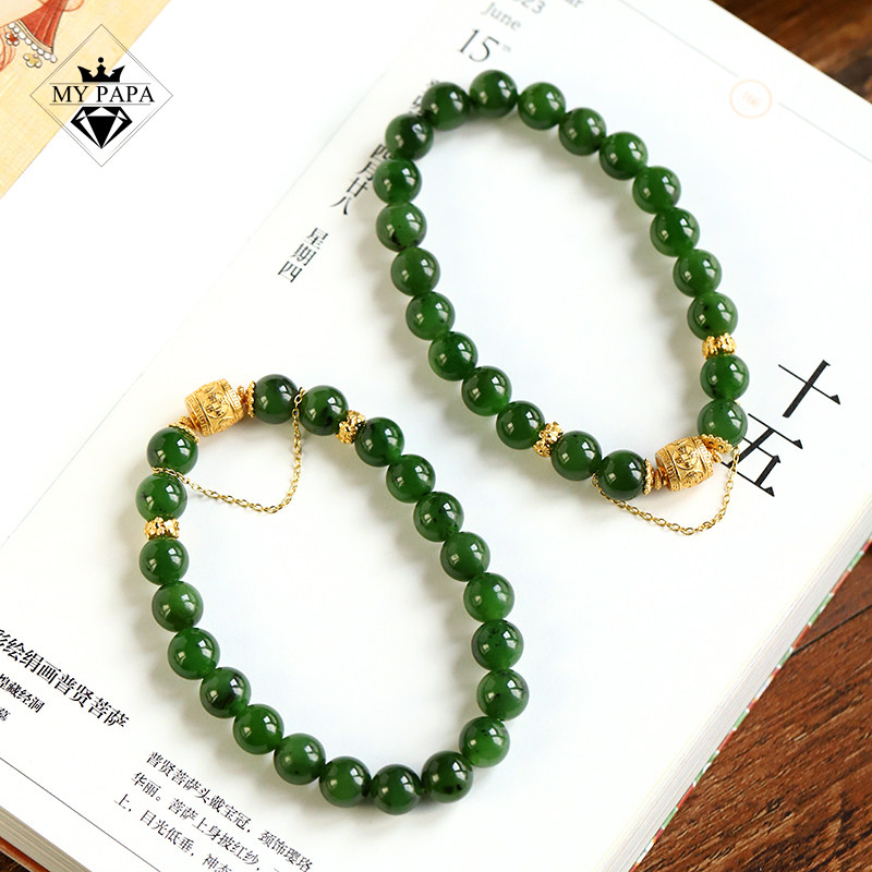 美人痣MYPAPA和田玉系列老坑菠菜绿碧玉单圈手链手串S925银镀金
