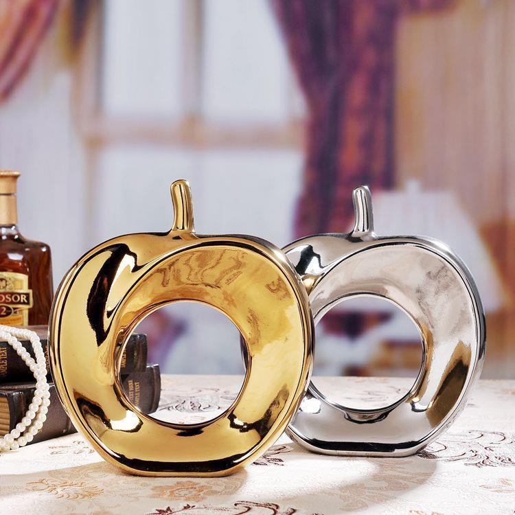 入门玄关摆件飘窗摆件装饰中式金色陶瓷工艺品婚礼礼物客厅电视柜