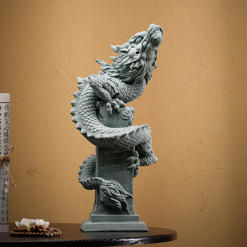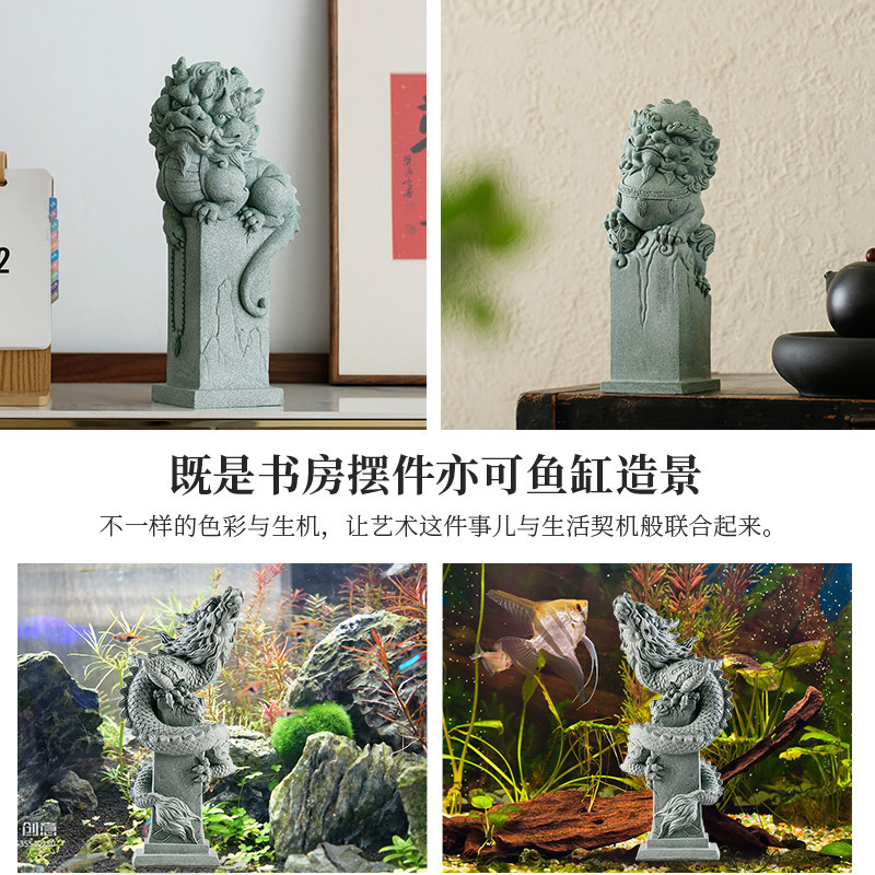 青砂石麒麟狮子盘龙柱微景观鱼缸假山造景桌面动物装饰品家居摆件