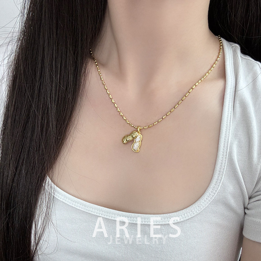 Aries 好事发生中式复古浮雕满钻花生吊坠S925纯银镀金简约轻奢