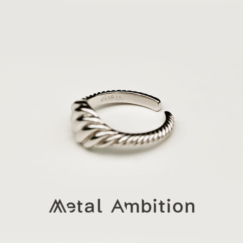 螺纹复古纯银戒指女小众设计轻奢高级感素圈开口可调节 时尚 个性