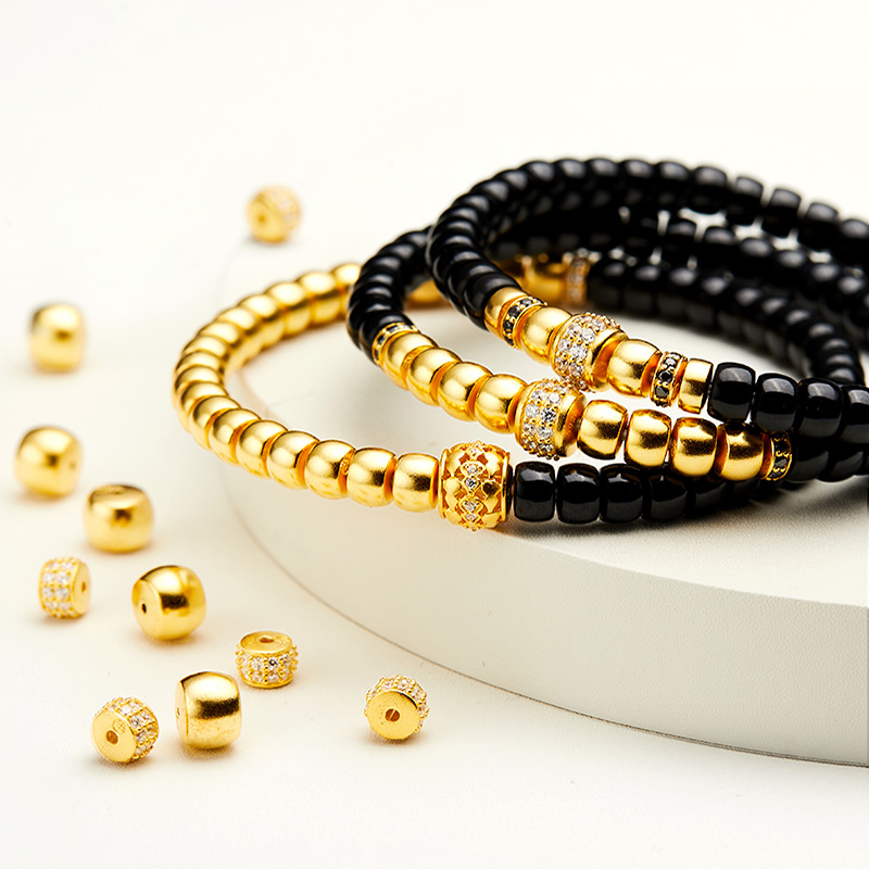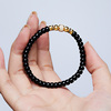 DR原创手工S925银镀金天然墨玉直切手串女款单圈归圆弹力软镯手链
