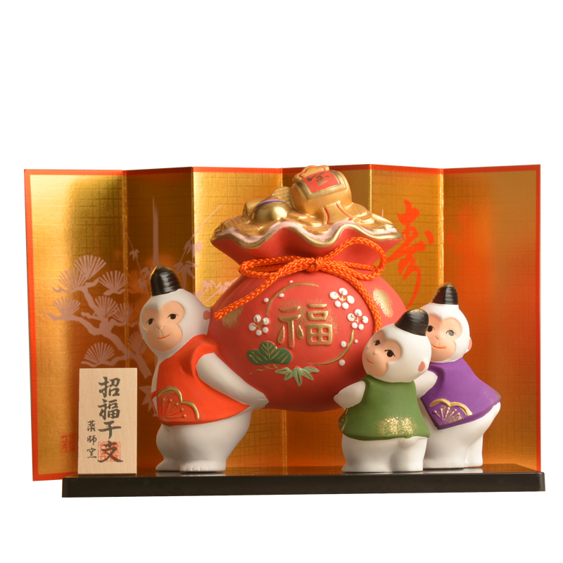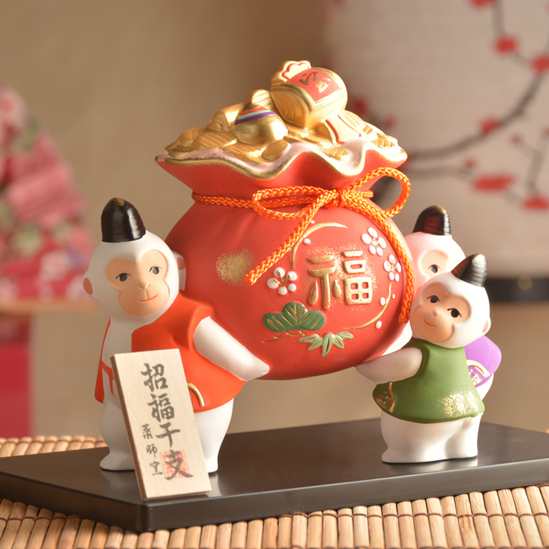 日本药师窑生肖猴子日式陶瓷摆件高级招财创意生日礼品车载装饰品