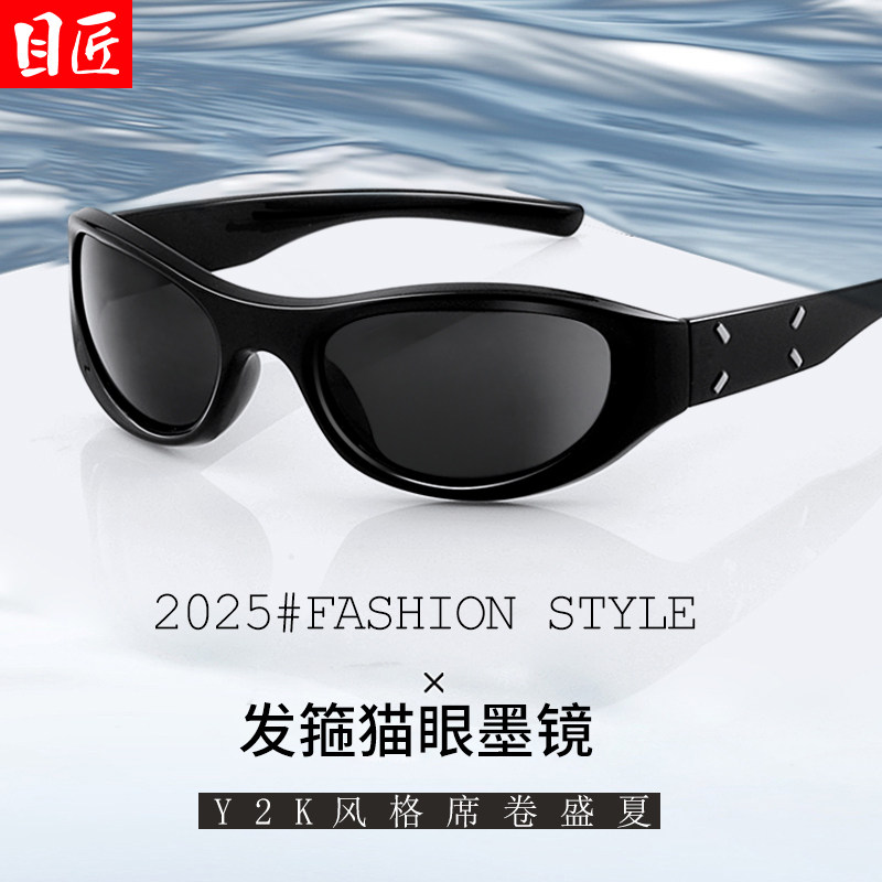 发箍式猫眼型近视墨镜女可配度数2025新款Y2K千禧风头箍太阳眼镜