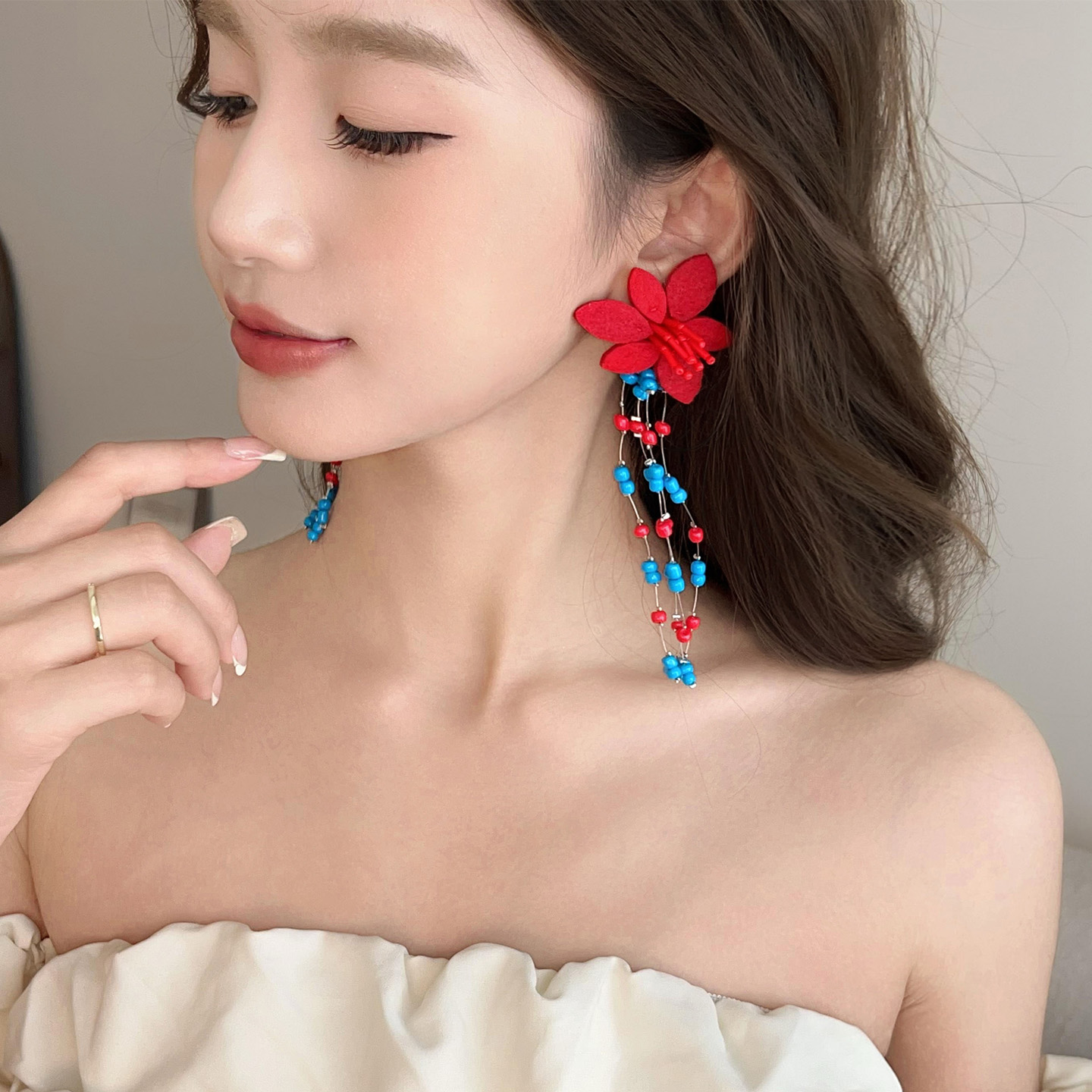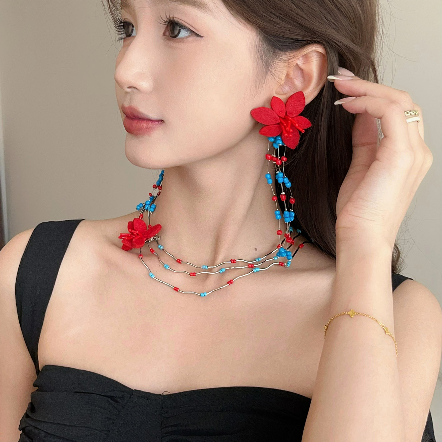 多巴胺彩色米珠花朵项链轻奢高级感锁骨链文艺项饰甜美项饰女