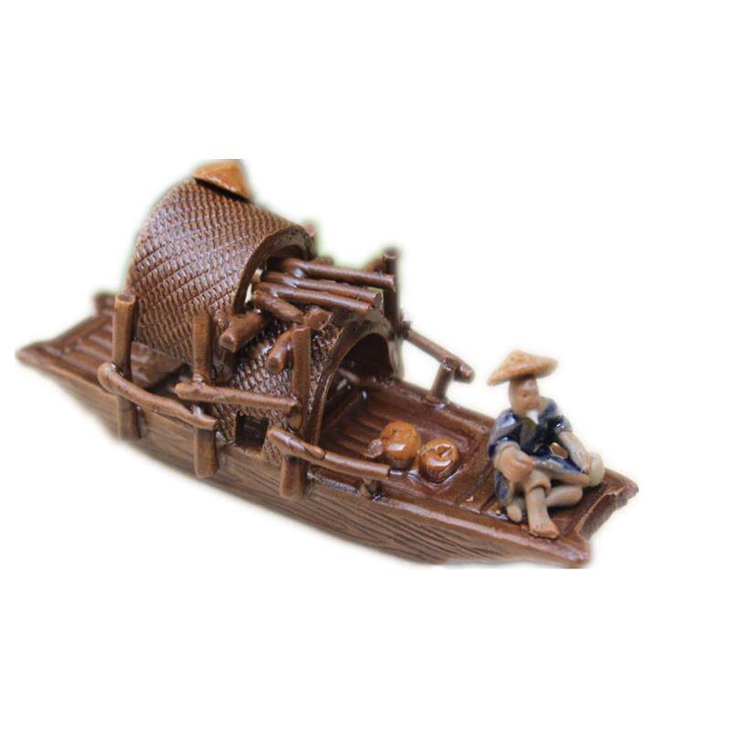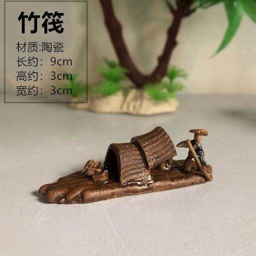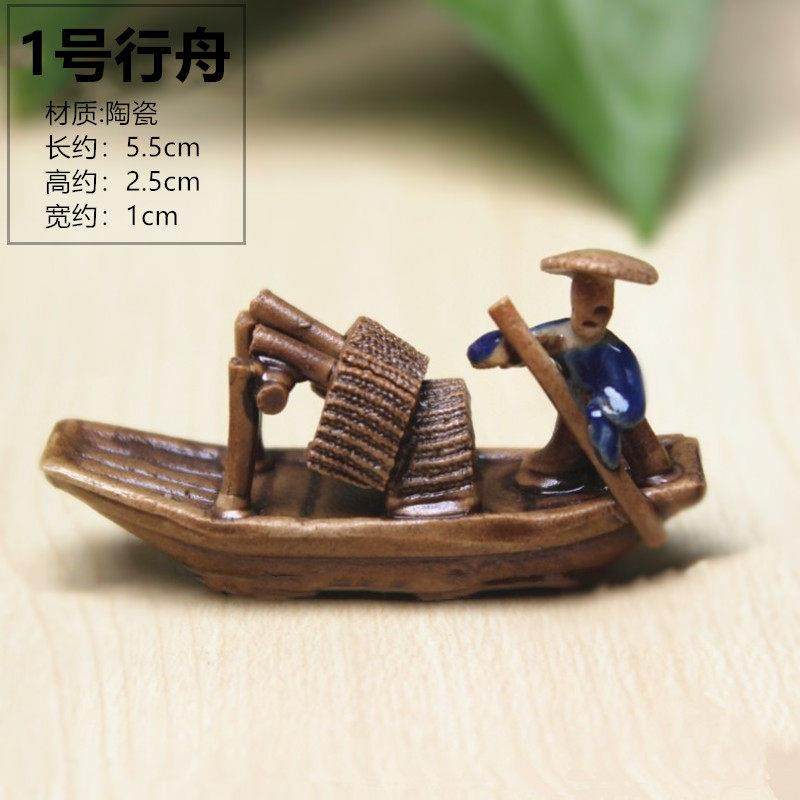 盆景配件人物小摆件假山装饰配件鱼缸配件陶瓷船古船渔船流水造景