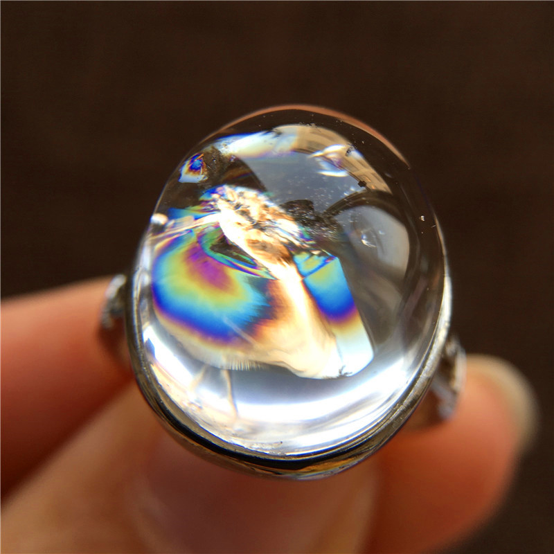 推荐精品天然阿赛白水晶七彩胶花彩虹戒指情侣款宝石水晶一物一图
