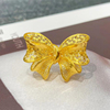5G黄金蝴蝶结戒指女足金999可调节活口镂空指环显大个性范食指戒
