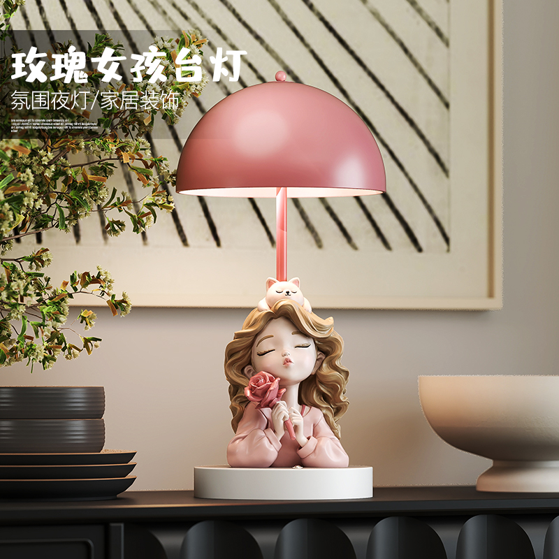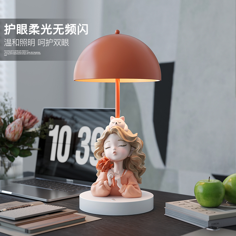 奶油风创意女孩台灯摆件卧室床头小夜灯生日礼物闺蜜高级感小众