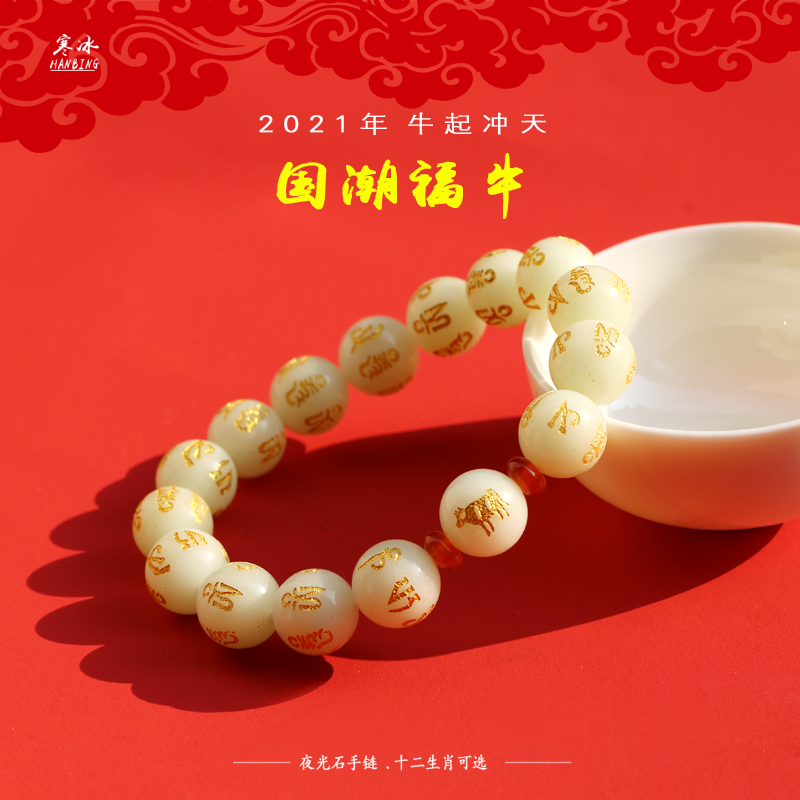 夜光珠十二生肖属相蛇夜光佛珠男手串六字真言手链送女友节日礼物
