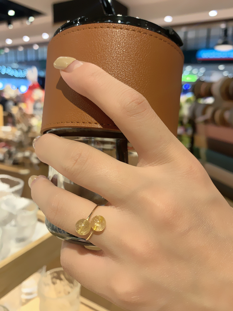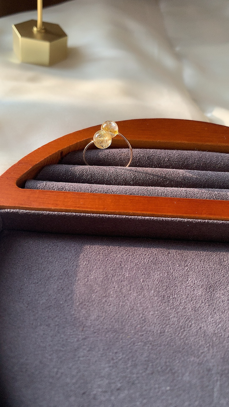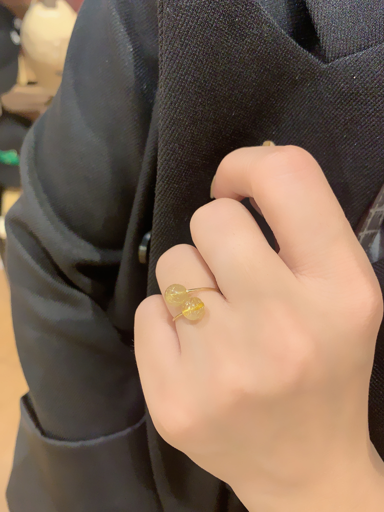 至强金发晶戒指天然招正财水晶原创手工14K包金指环女开口可调节