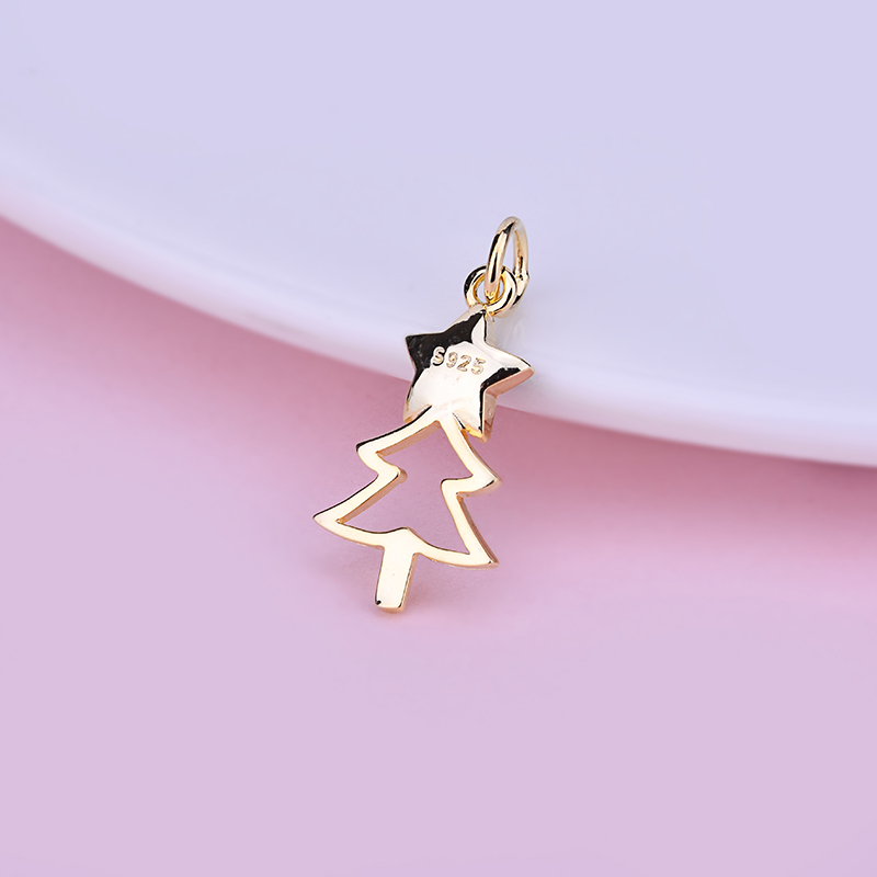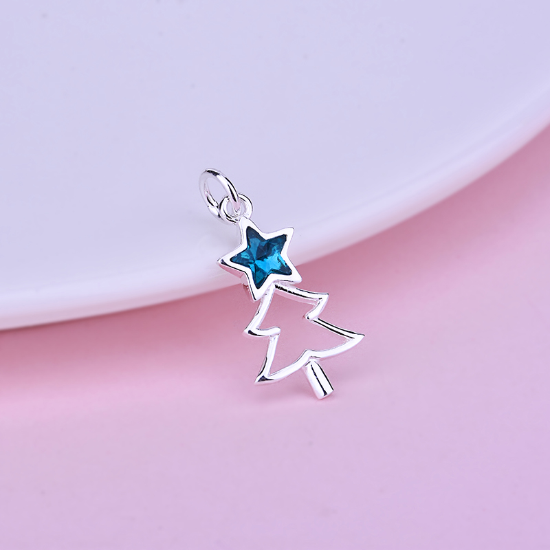 925纯银DIY饰品配件 可爱日韩圣诞树吊坠 手链项链挂件配饰