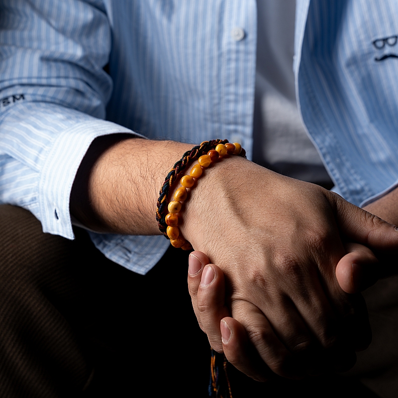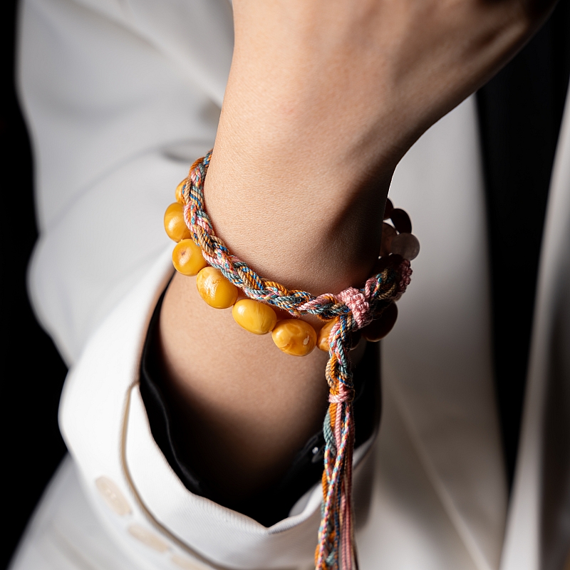 一物一图 . 天然蜜蜡藏式编绳手串 原创设计双圈民族风情侣手链