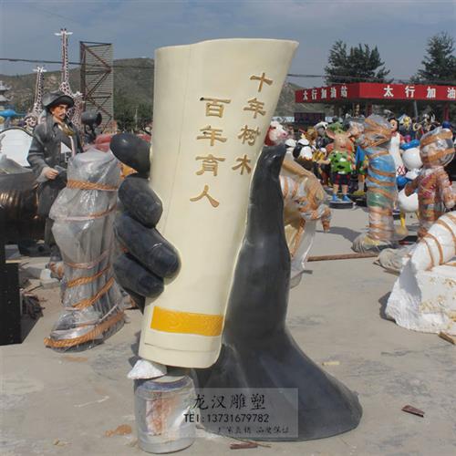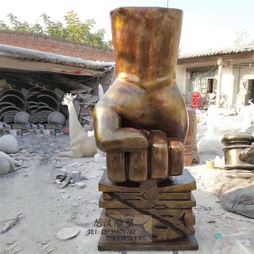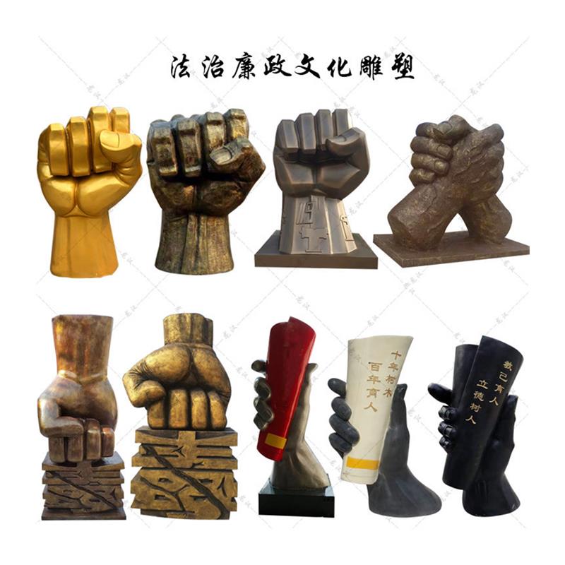 现货彷真拳头雕塑玻璃钢反腐打击禁毒法制题材雕塑手握书卷雕塑