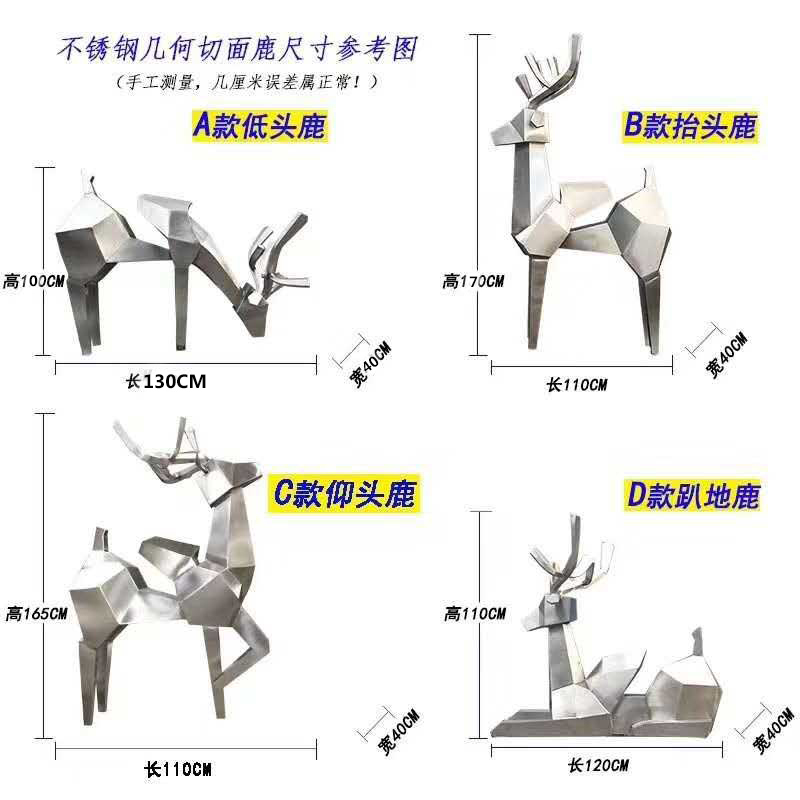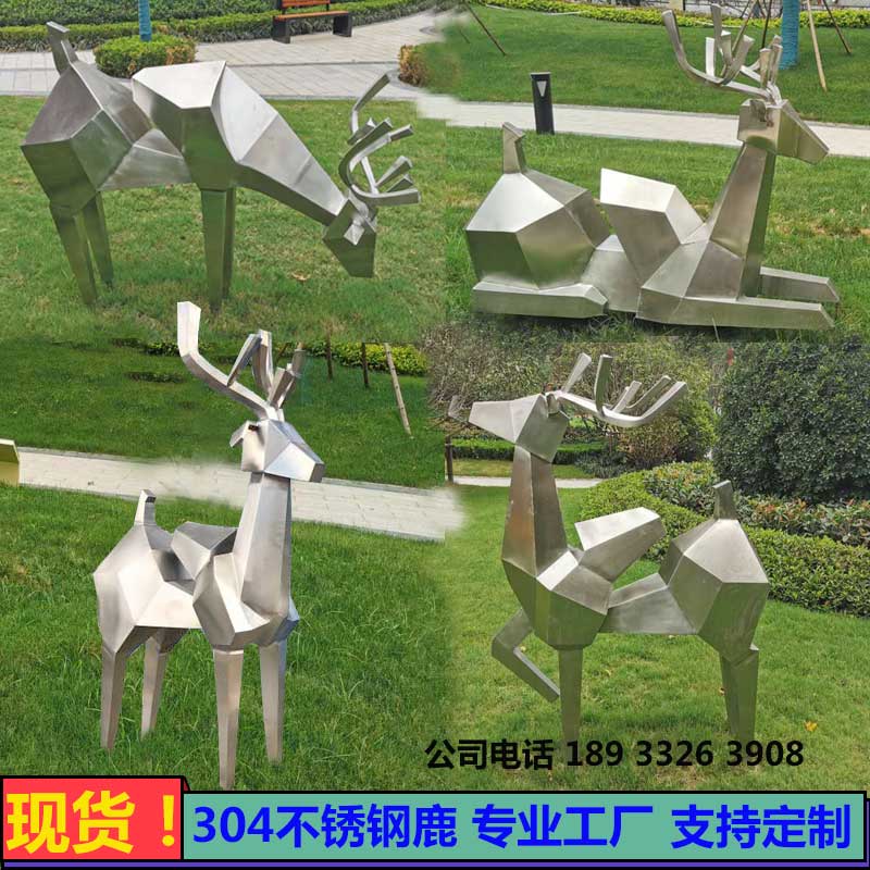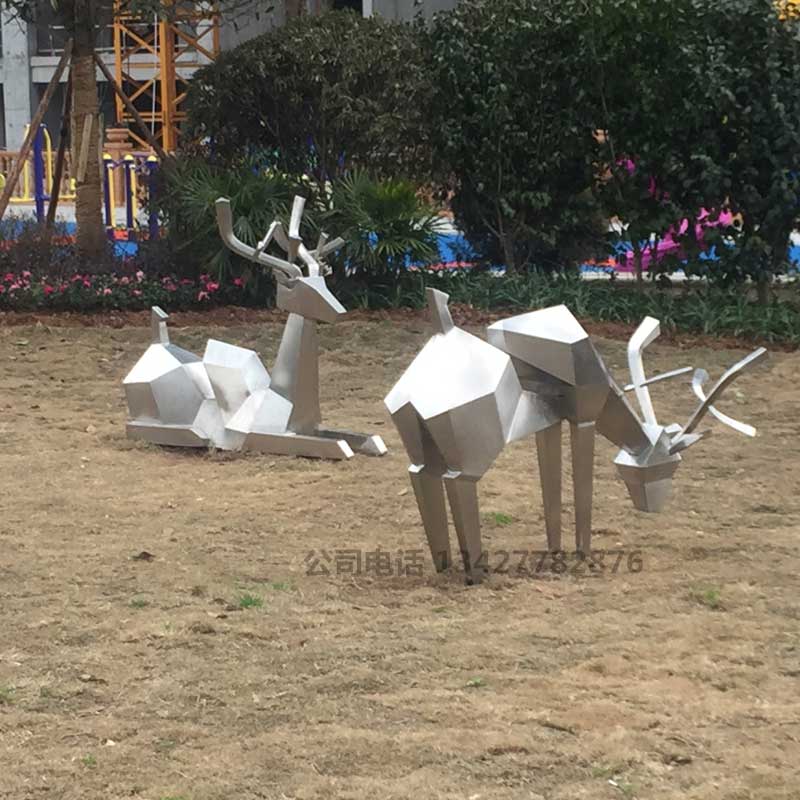 不锈钢几何鹿雕塑摆件园林景观水景池块面菱形切面梅花鹿装饰定制