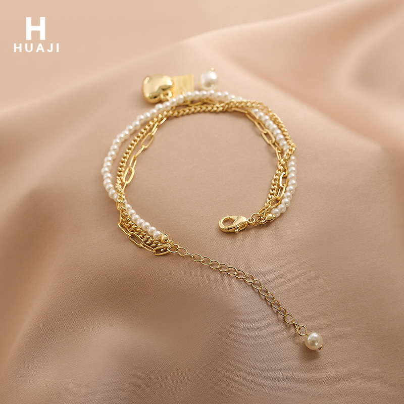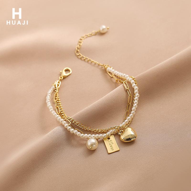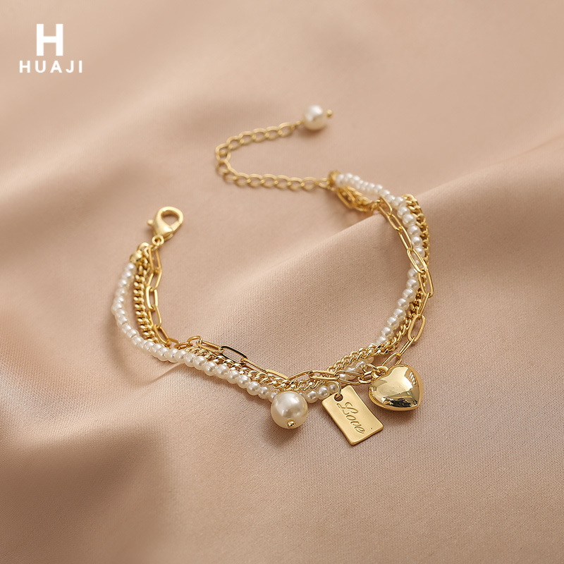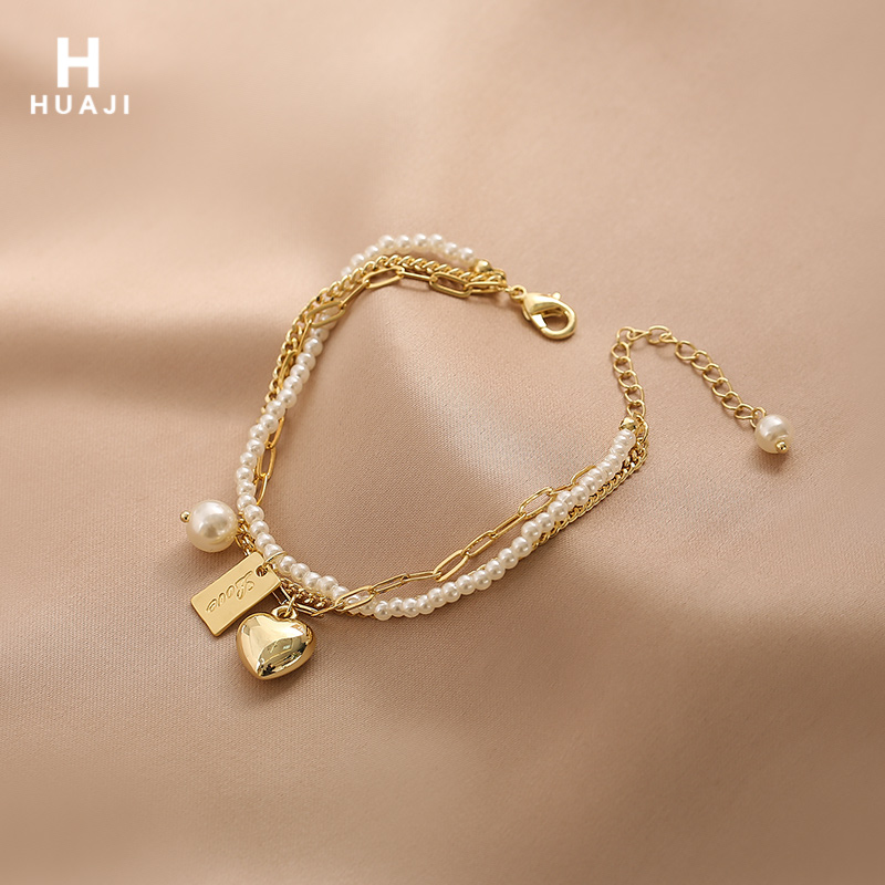 高级感珍珠手链女款小众设计字母简约冷淡风金属心形气质百搭手饰
