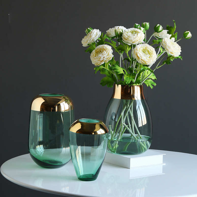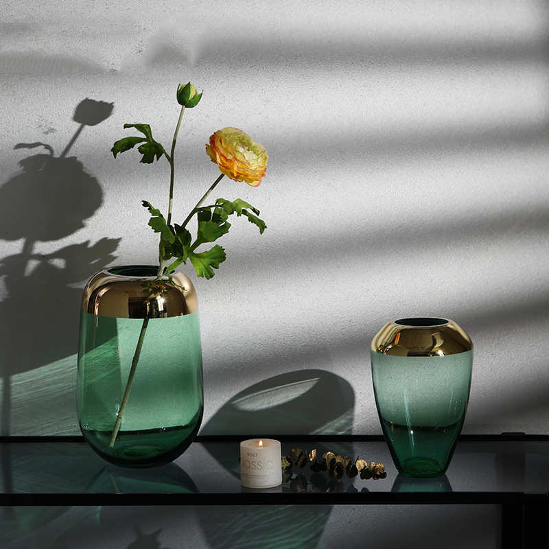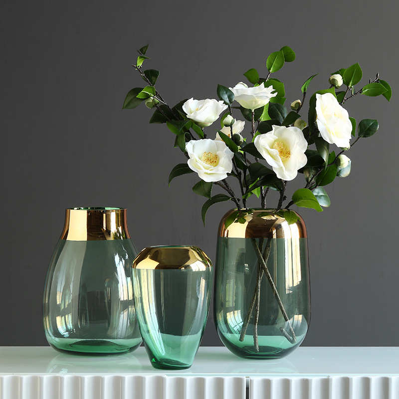 简约现代透明玻璃花瓶摆件轻奢风客厅餐桌玄关插花轻奢金属装饰品