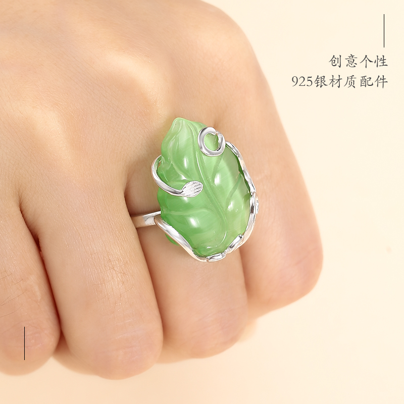 S925纯银戒指空托蜜蜡琥珀绿松石花托不规则随形活口可调节银戒托