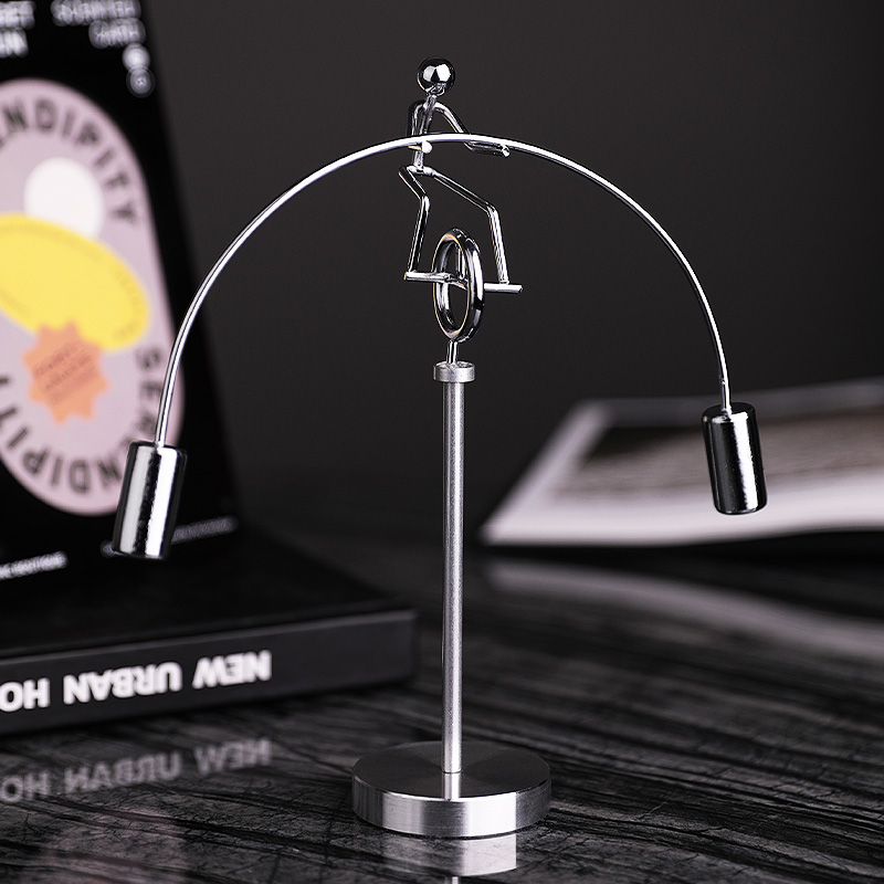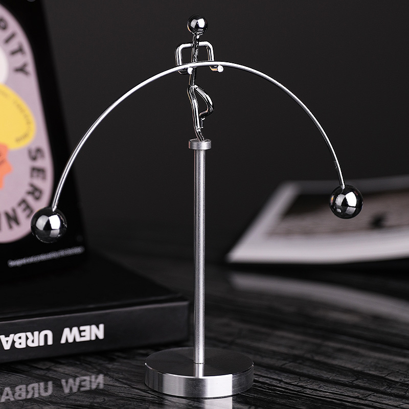 北欧ins创意可爱混沌牛顿摆金属不倒翁小铁人办公桌物理平衡摆件