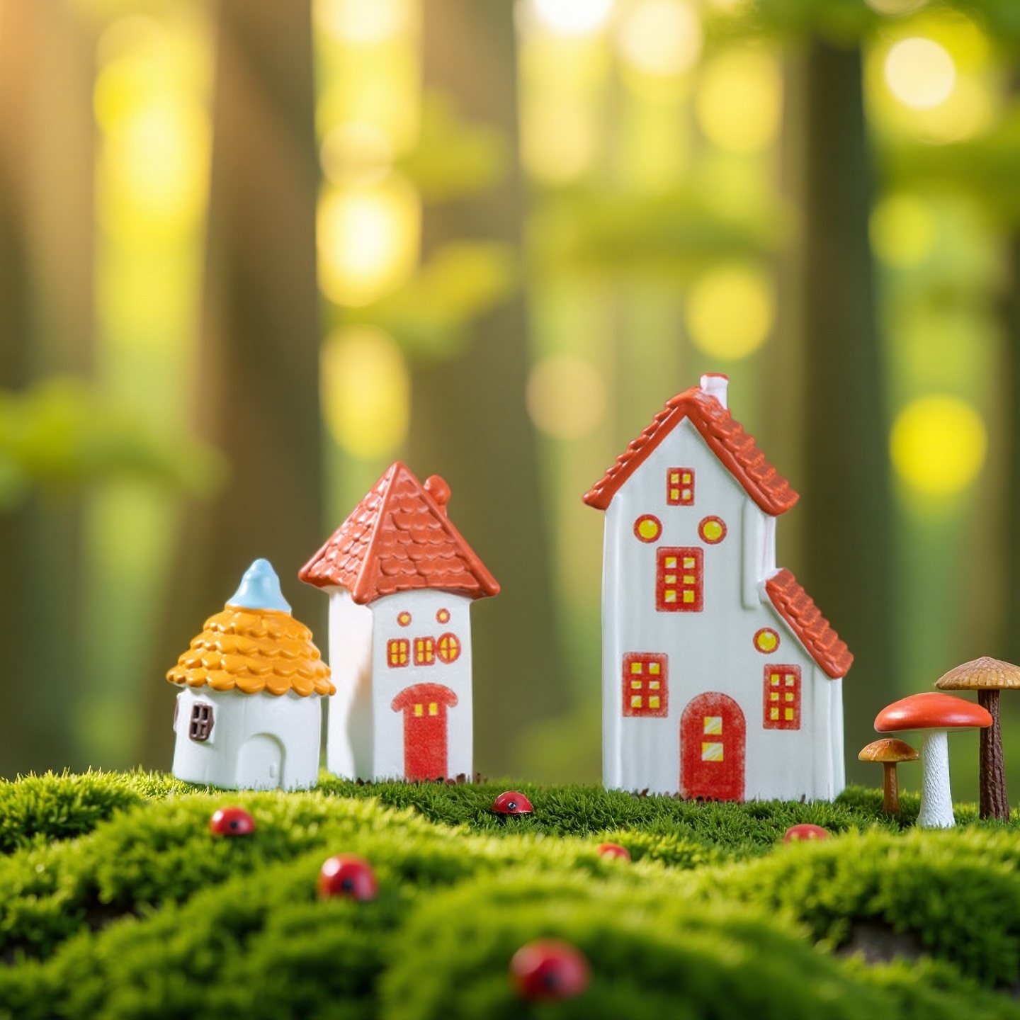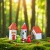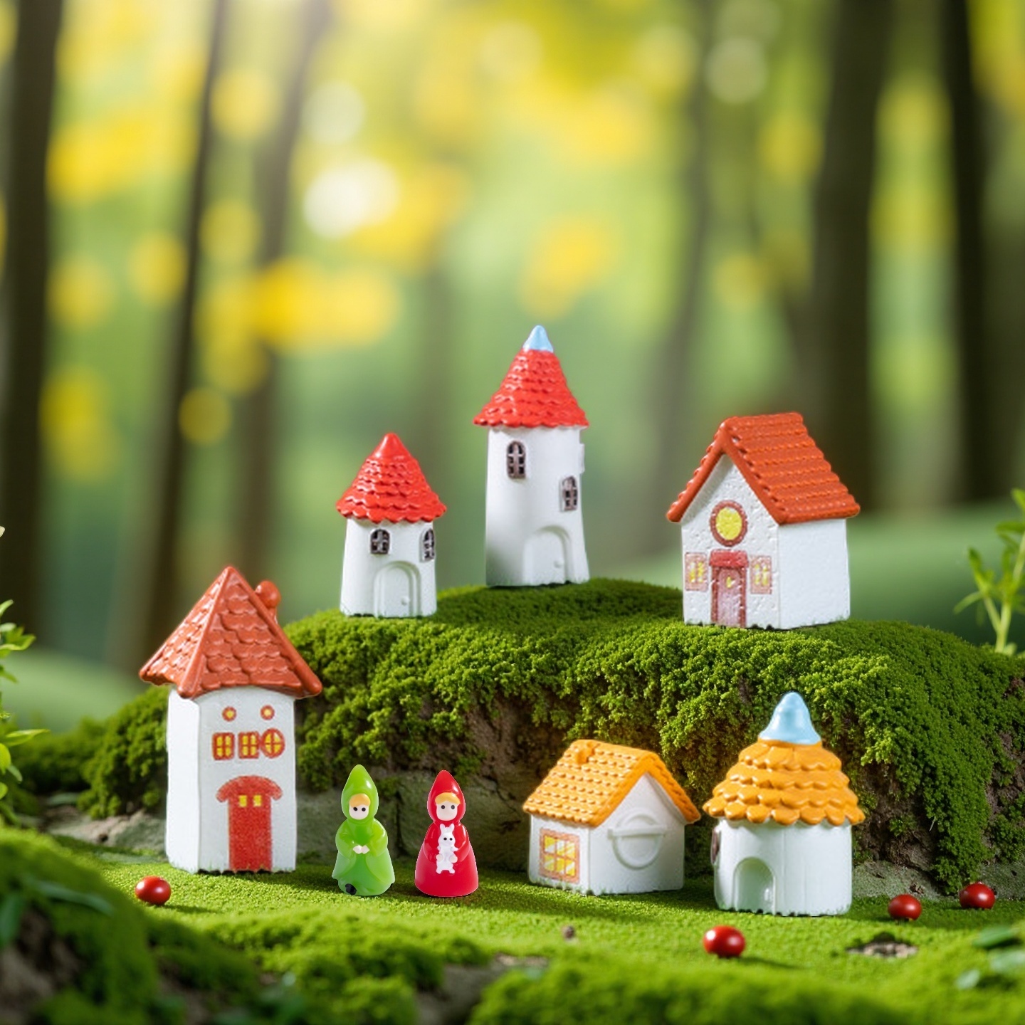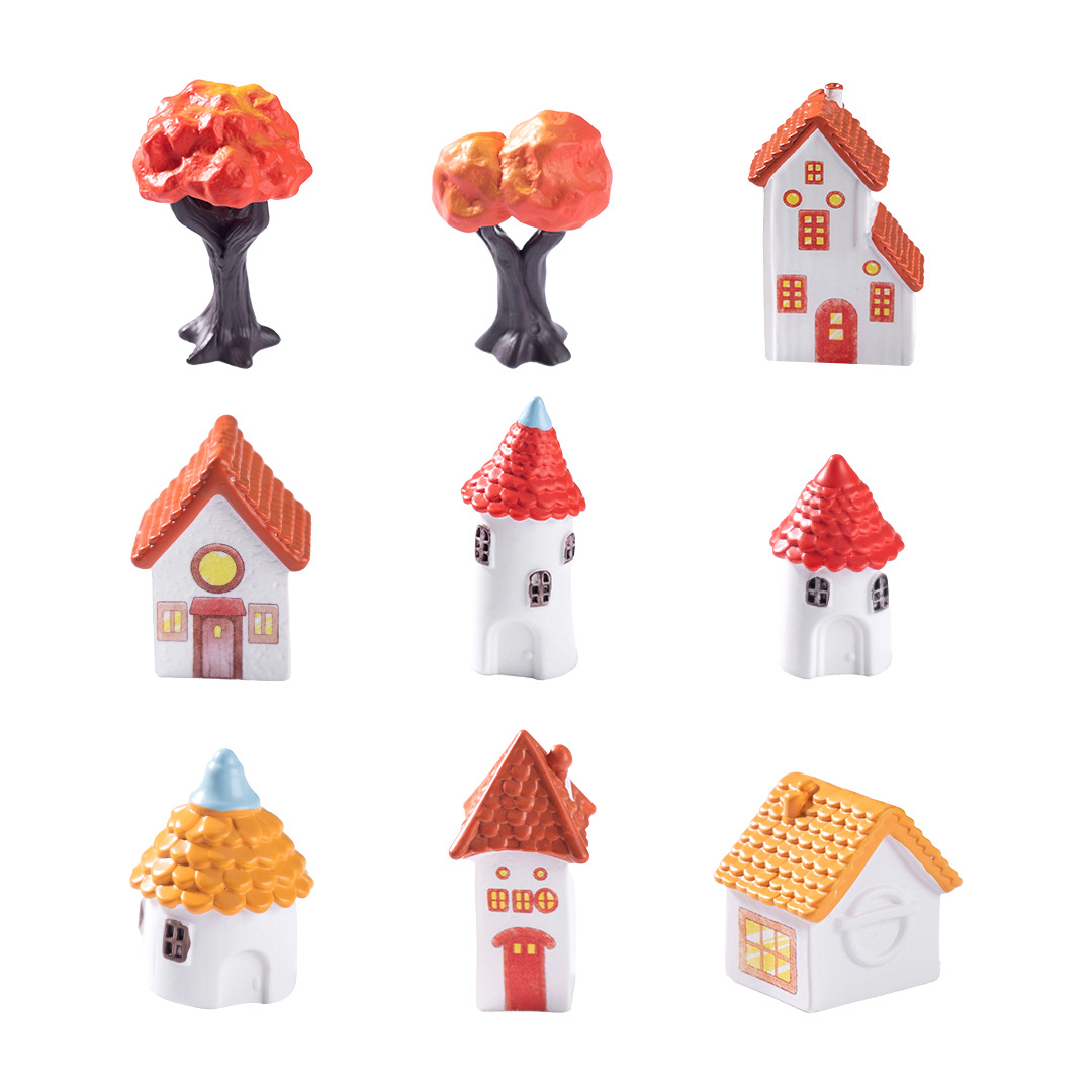 创意欧式复古精灵红瓦烟囱小房子苔藓造景装饰品配件微景观小摆件