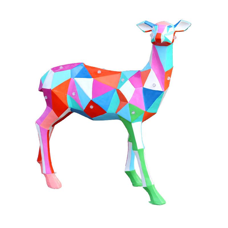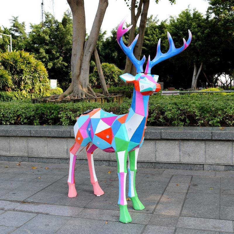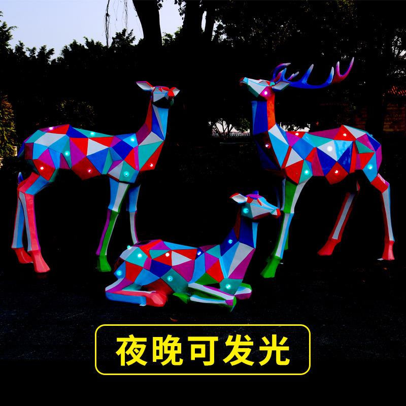 几何块面发光太阳能梅花鹿玻璃钢雕塑户外彩色鹿园林别墅草坪夜光
