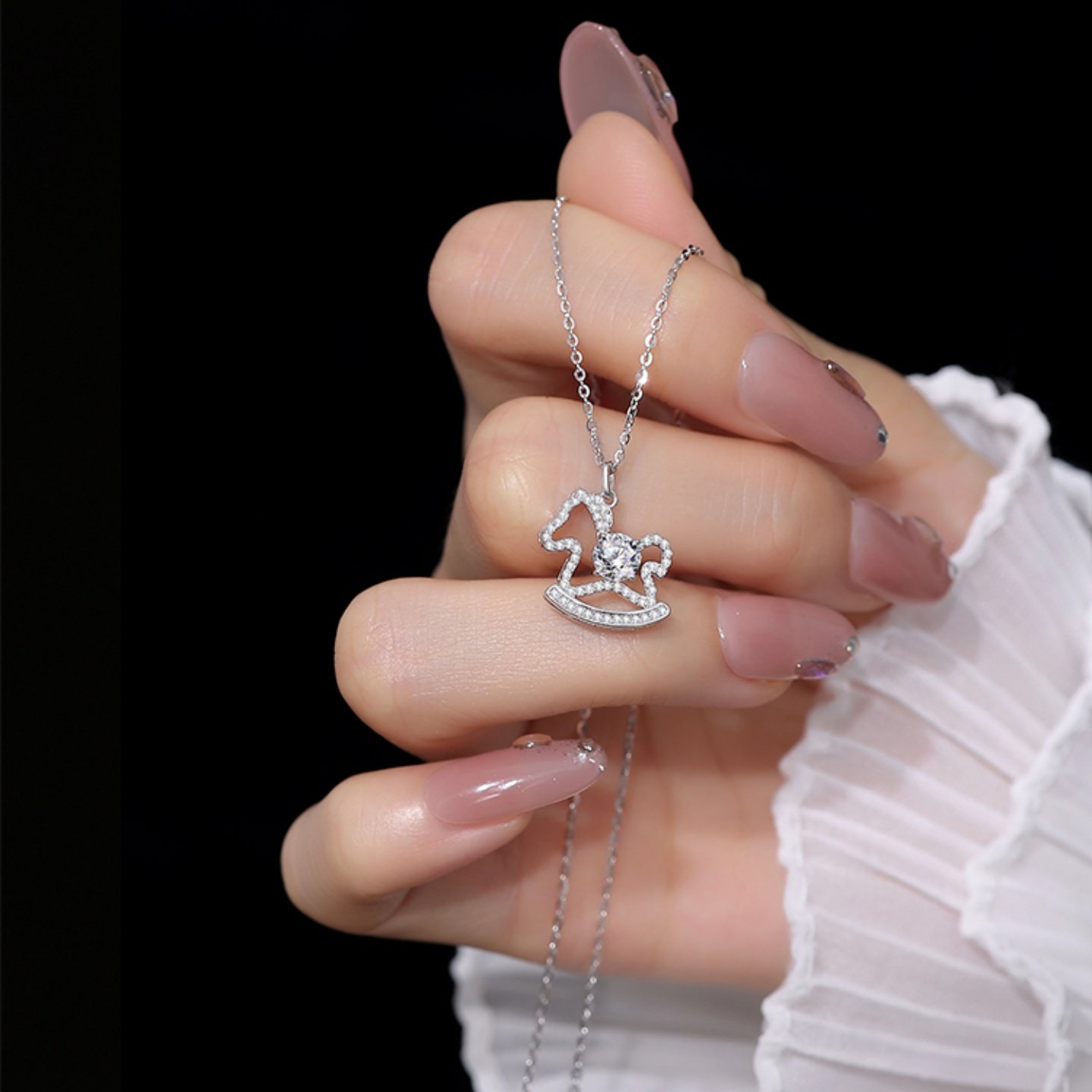 「闪耀木马」项链纯银S999女小众高级感满钻生肖小马锁骨链送女友